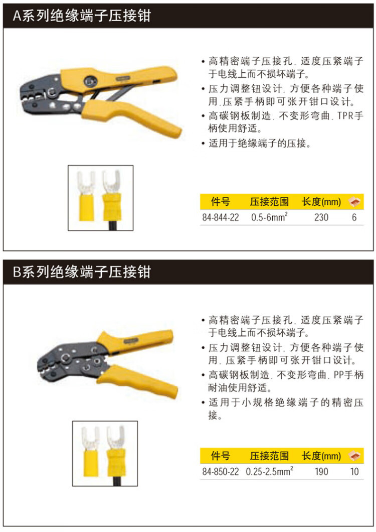 Stanley Stanley 84-844-22 Serie A pinzas de crimpado de terminales aislados 0.5-6mm2