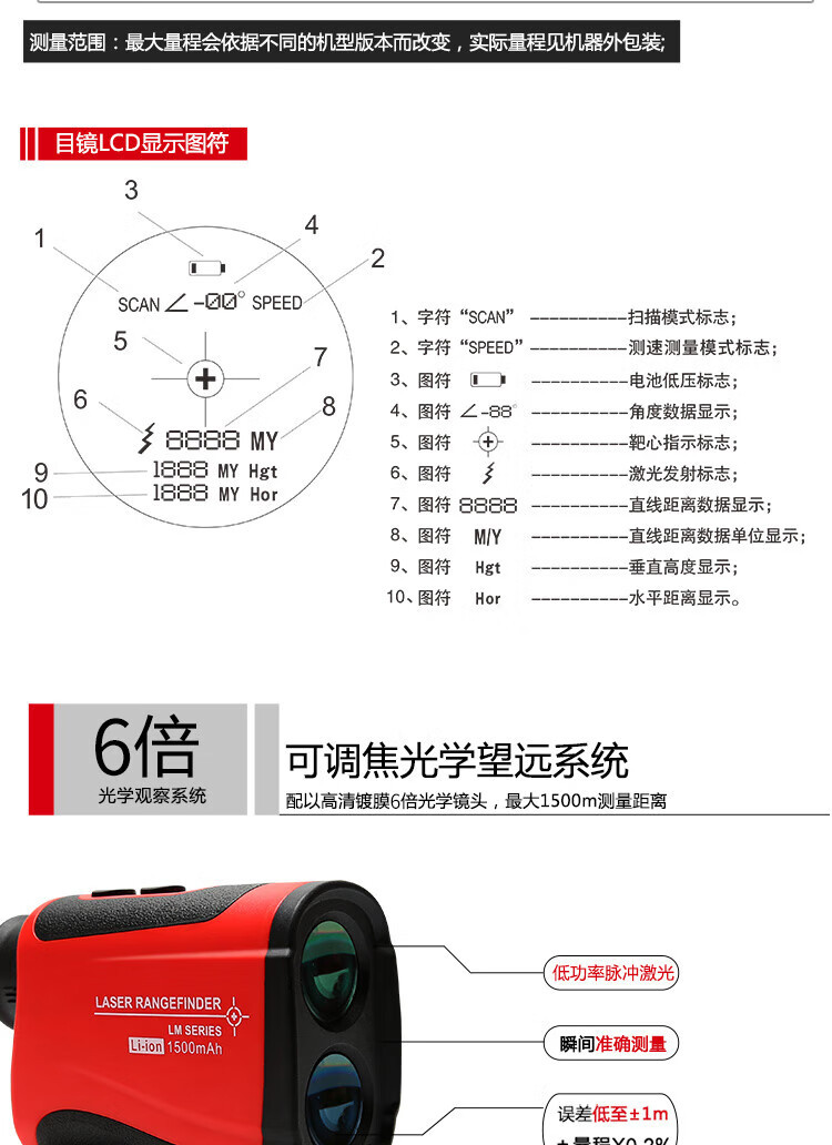 Telescopio de alcance láser UNI-T LM1500