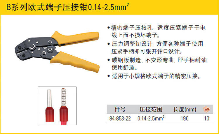Stanley Stanley 84-845-22 Serie A pinzas de crimpado de terminales continuos 0.5-6mm2