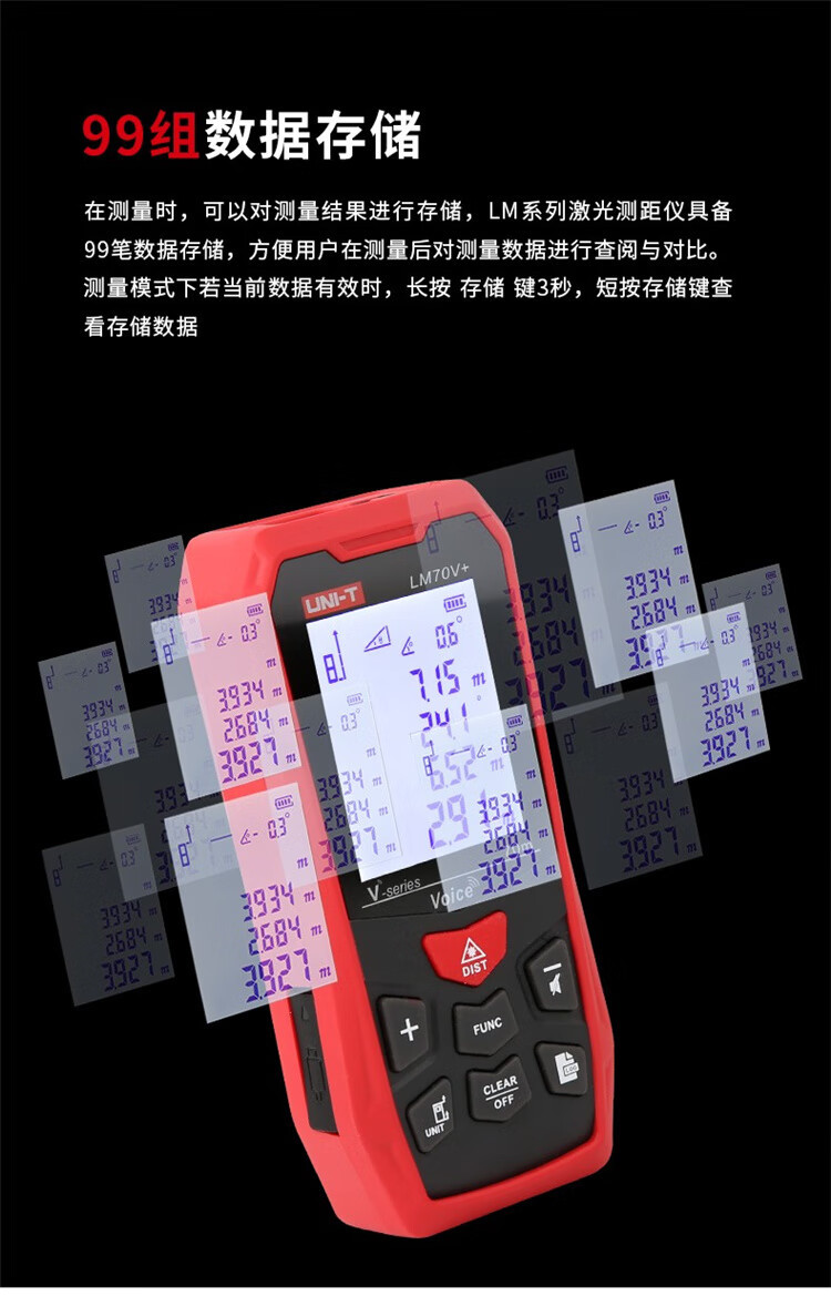 UID UNI-T LM70V + rango láser de mano rango infrarrojo de voz 70 metros