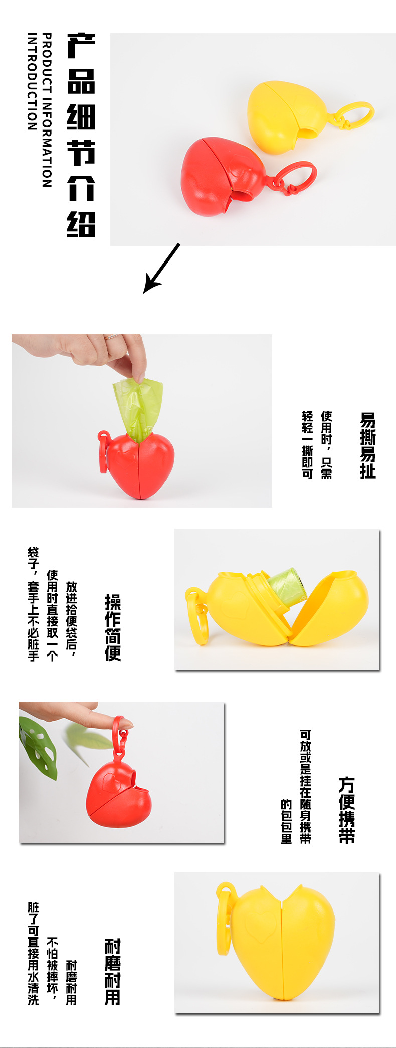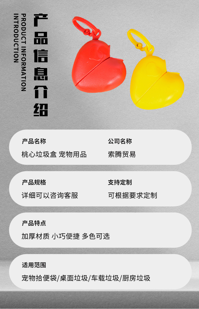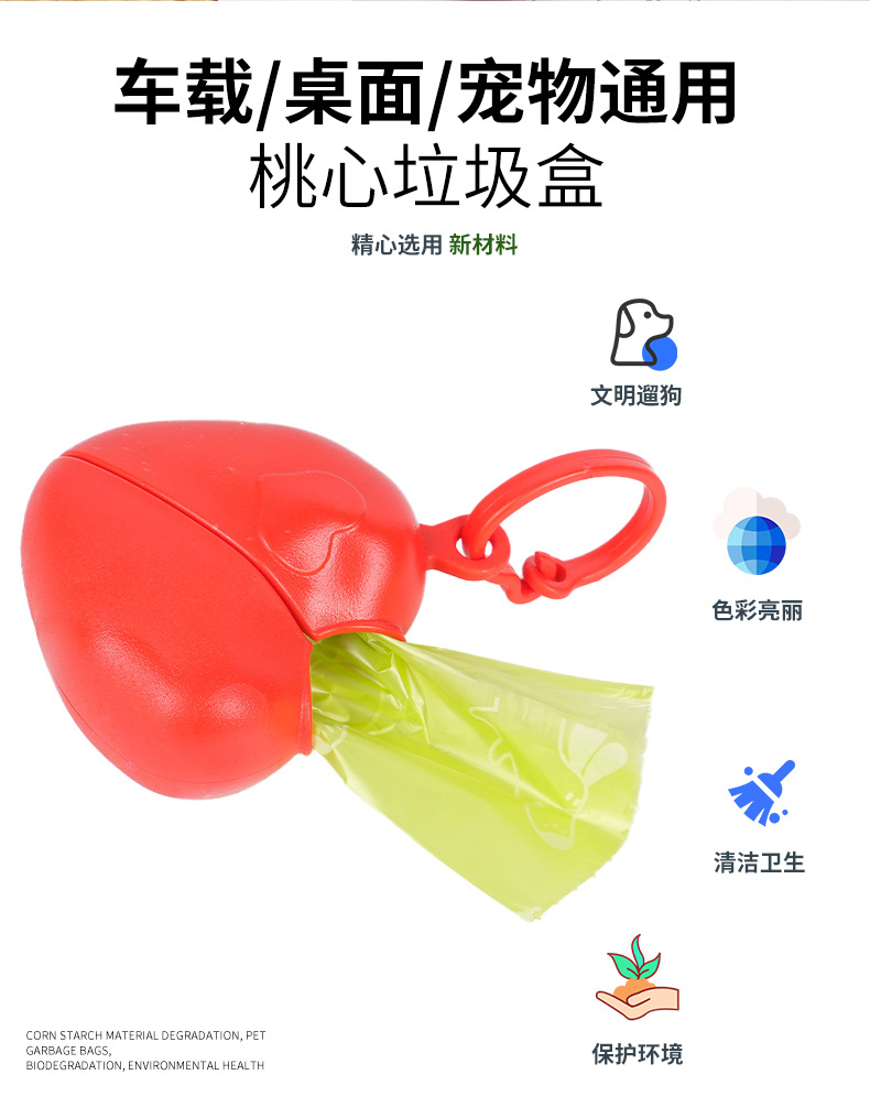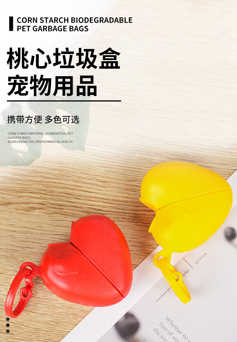 Caja de basura de corazón de melocotón, artículos para mascotas, bolsas de heces, bolsas de basura, distribuidor de bolsas de heces, bolsas de heces, heces y heces