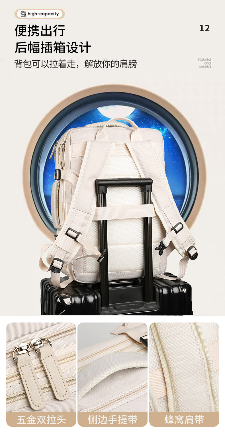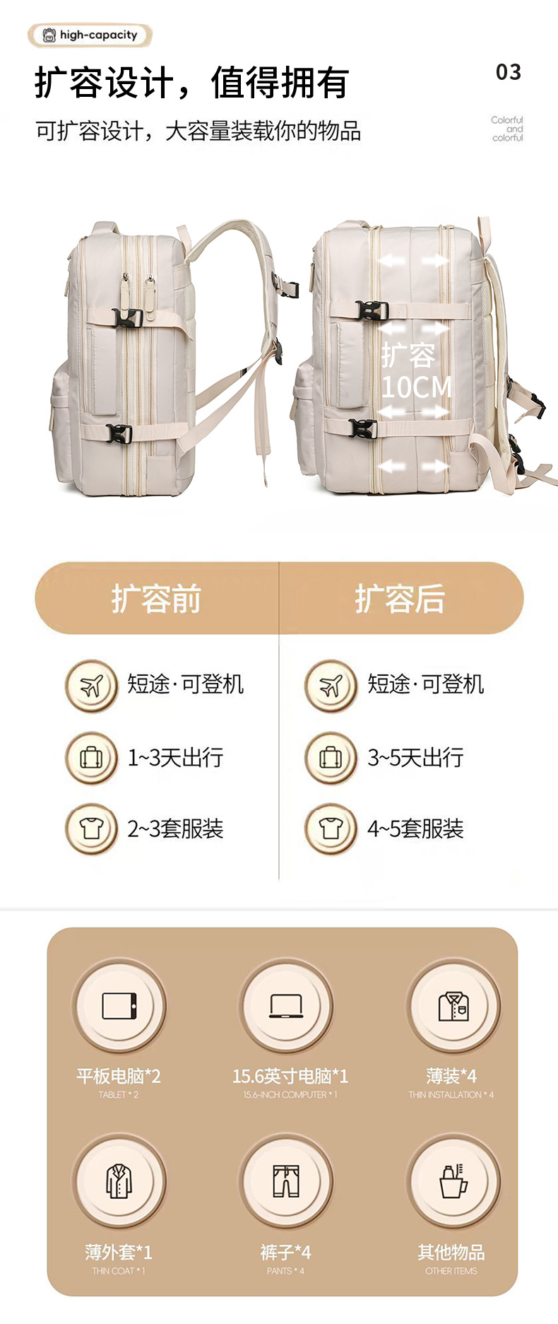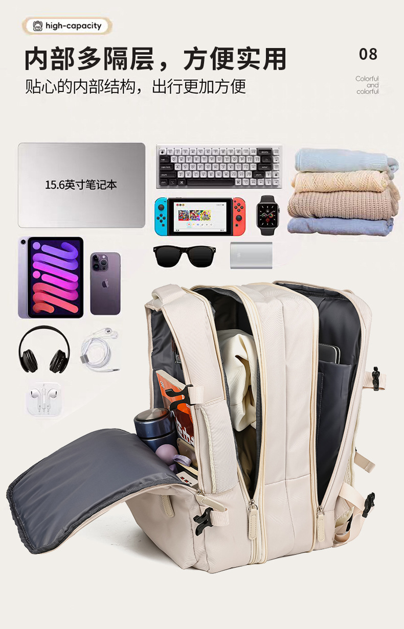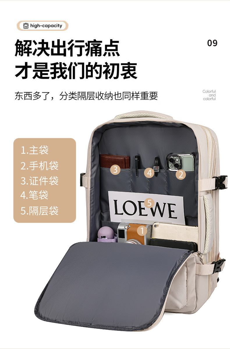 Mochila de mujer, logotipo impreso, simple viaje corto, bolsa de viaje expandible de 40 litros