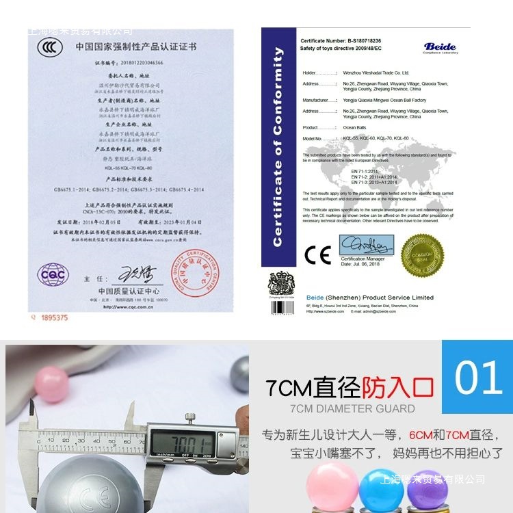 海洋球通过EN71欧盟玩具检测认证,需要检测报告的亲们请联系客服。