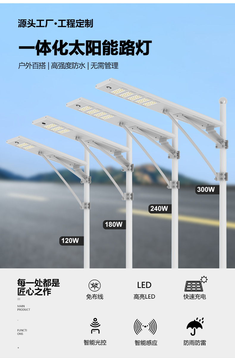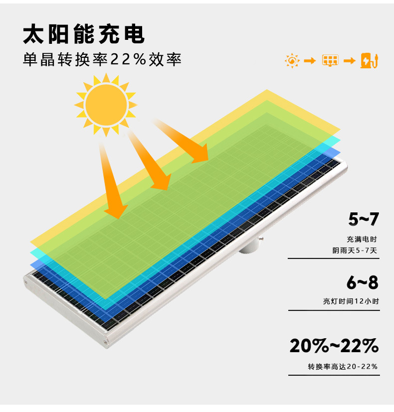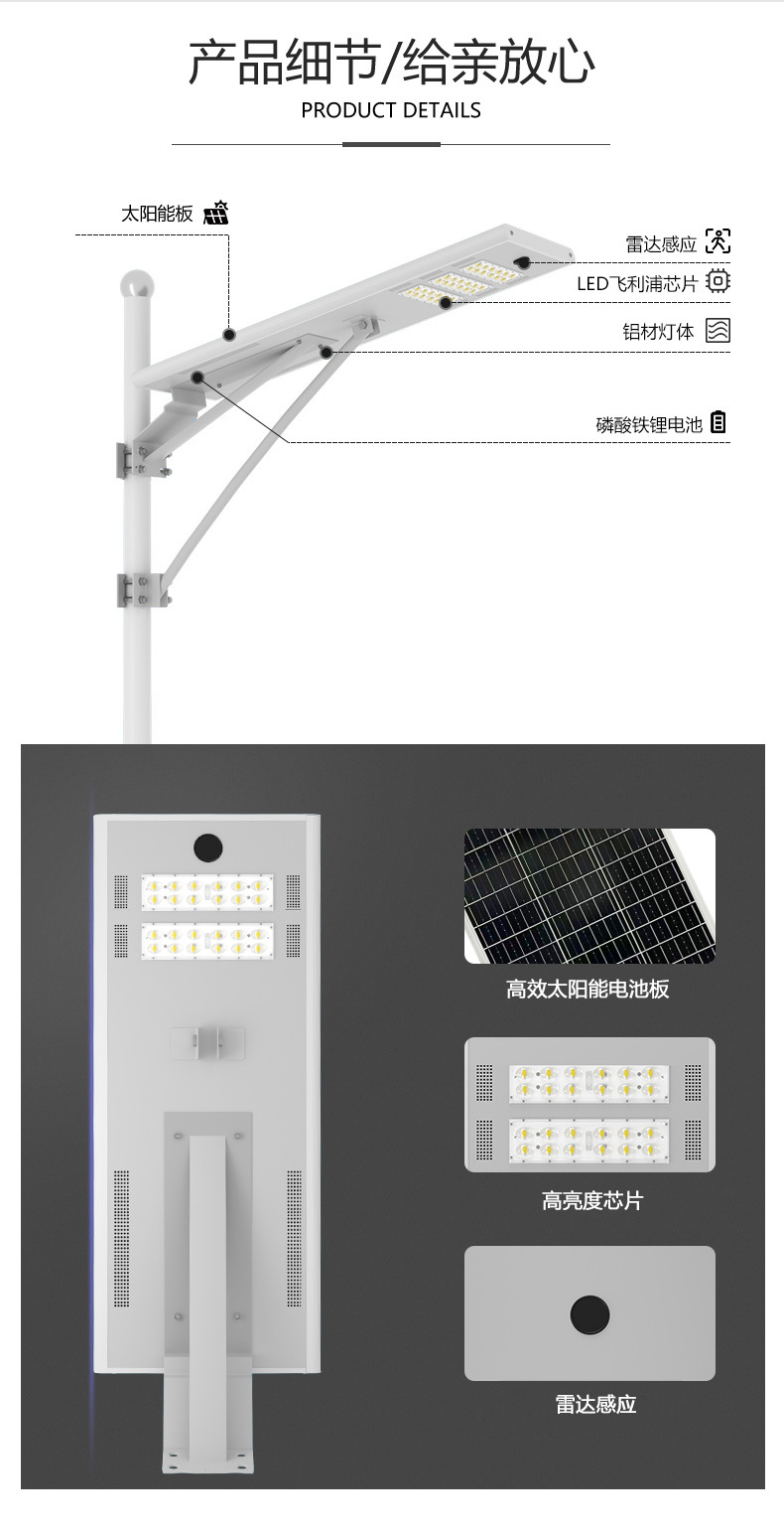 Luz de calle solar para exteriores, luz de jardín, luz de alta potencia led súper brillante para el hogar, luz de carretera de ingeniería rural