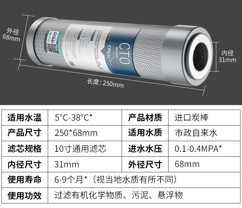 | Color | Valor activado CTO del yodo del elemento filtrante del carbono 10-inch alto,Elemento de filtro de carbón activado CTO de 10 pulgadas regular |