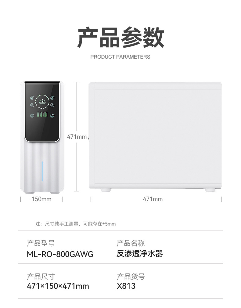 | Capacidad | El nuevo purificador de agua 800G [toda la máquina incluye accesorios de filtro],Un conjunto de elementos filtrantes de repuesto |