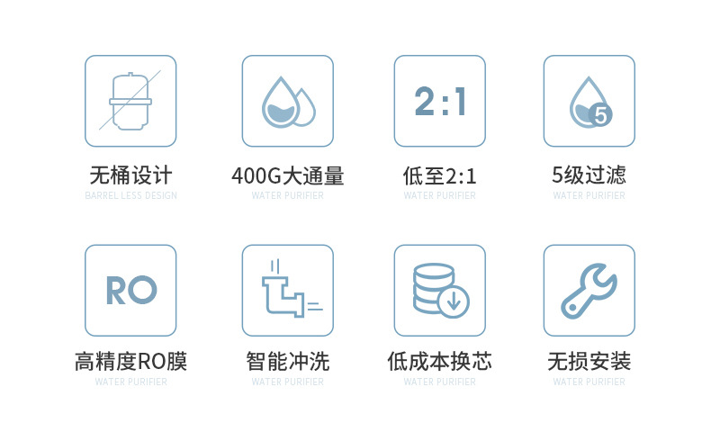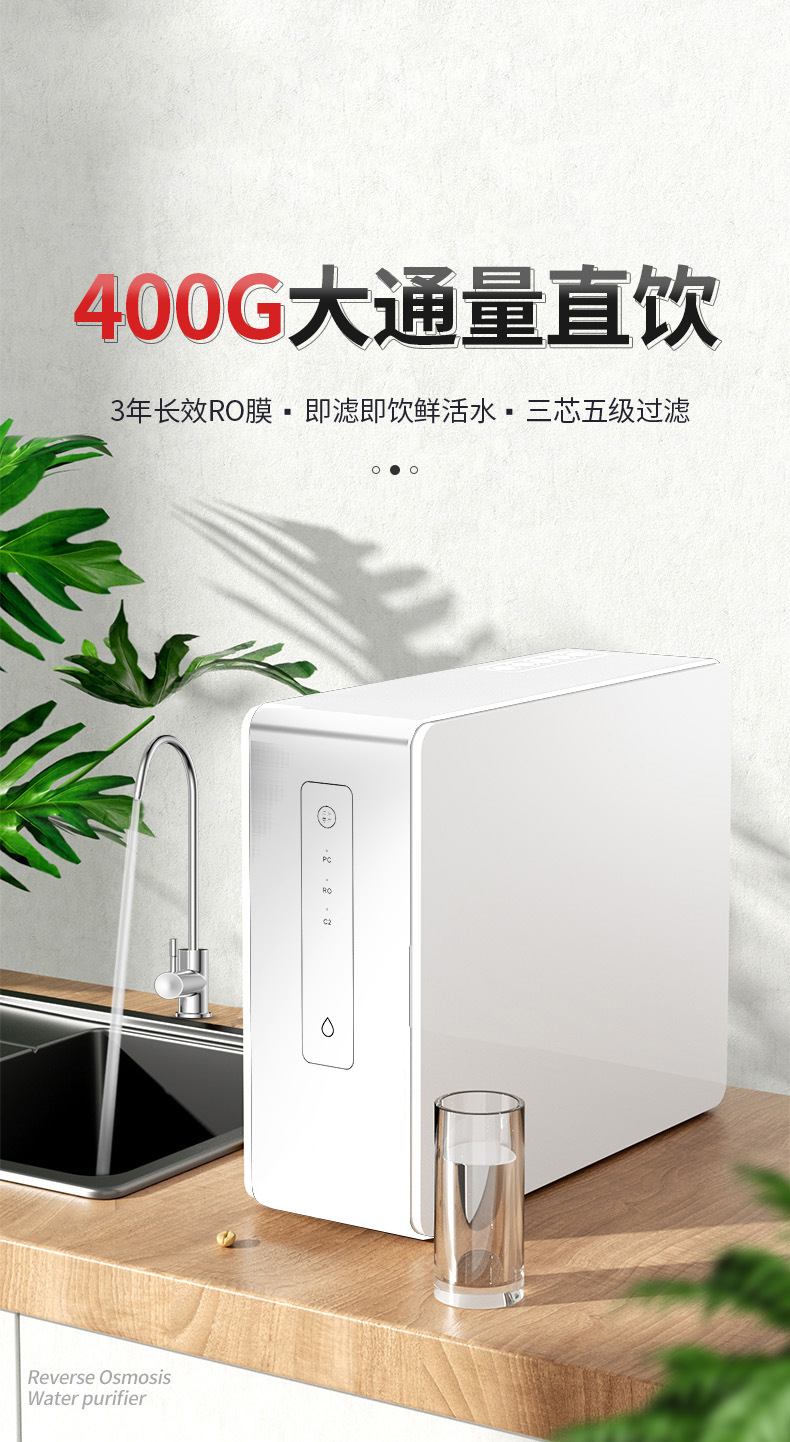 | Capacidad | 400g nuevo purificador de agua de ósmosis inversa (marca fuera de línea), filtro de primera etapa pc, filtro de segunda etapa ro, filtro de tercera etapa C |