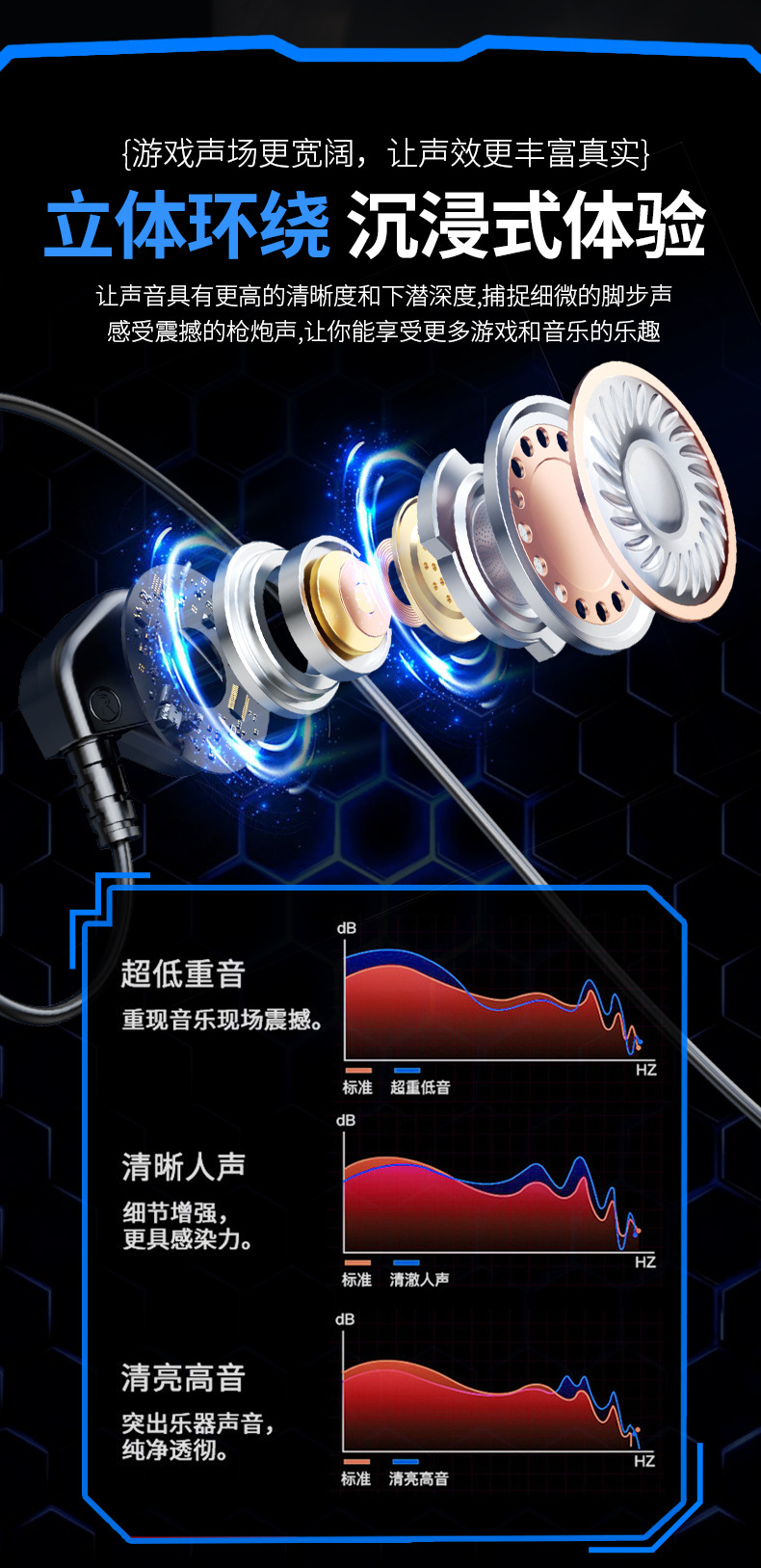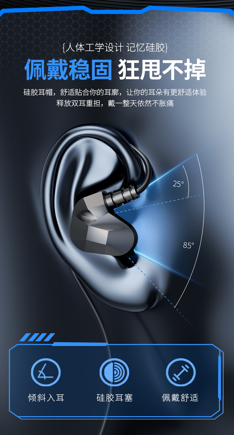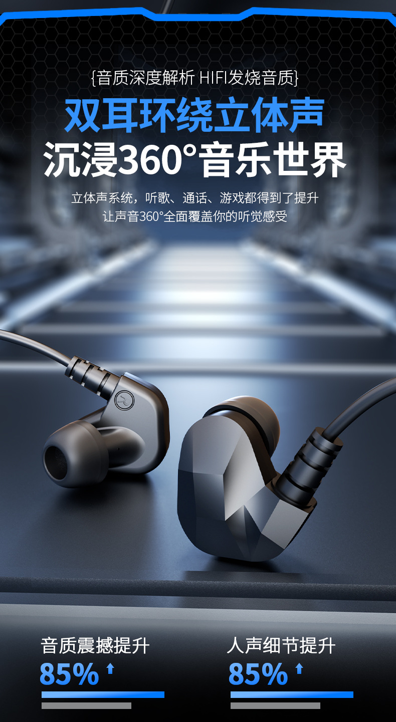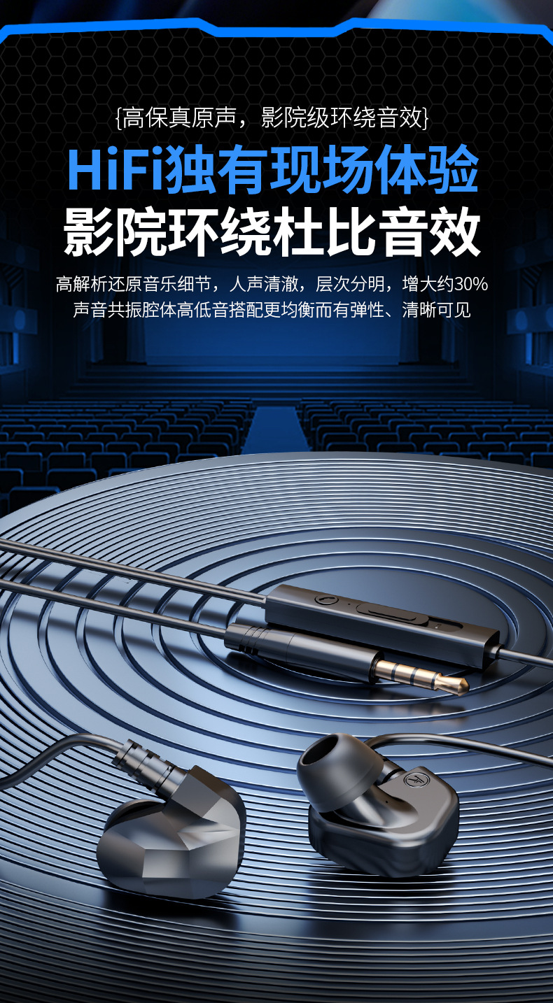Transfronterizos HIFI fiebre clase auriculares cableados en el oído buena calidad de sonido deportes comer pollo juegos teléfonos móviles auriculares de computadora