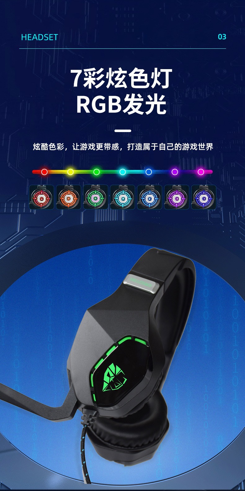 | Atributo 1 | auriculares luminosos RGB |