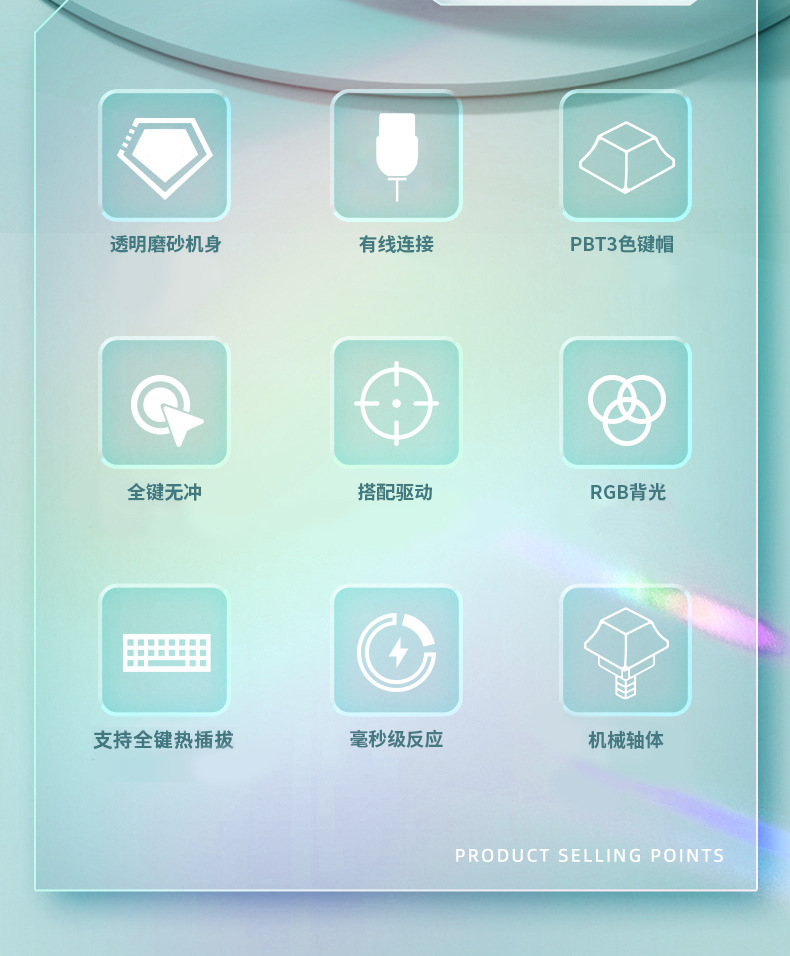Plata talla V7 cristal mecánico táctil juego de cable teclado redondo punk keycap luminoso transfronterizo al por mayor Amazon