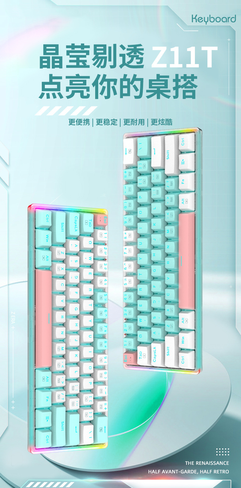 Z11T cable personalizado en caliente enchufe 61 teclado mecánico teclado de juegos de escritorio portátil teclado de eje rojo