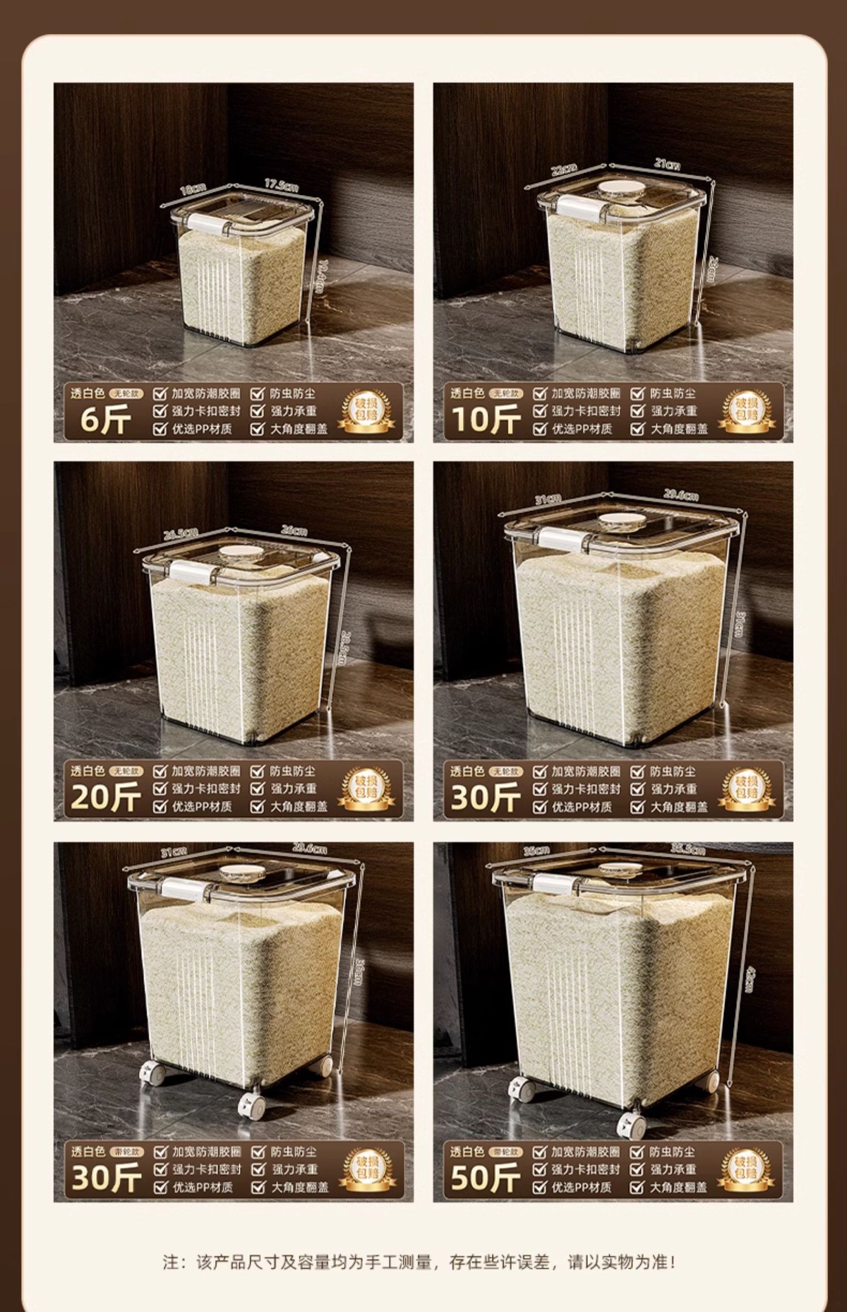 | Color | [transparente] 6 kg + taza de medición, [transparente] 6 kg + taza de medición, [transparente verde] 6 kg + taza de medición, [transparente verde] 10 kg + taza de medición, [transparente verde] 10 kg + taza de medición, [transparente verde] 10 kg + taza de medición, [transparente verde] 20 kg + taza de medición, [transparente verde] 20 kg + taza de medición, [transparente verde] 20 kg + taza de medición, [transparente verde] 30 kg + taza de medición, [transparente verde] 30 kg + taza de medición, [transparente verde] 30 kg + taza de medición + rueda,[Café transparente] 30 <unk> + taza de medición + rueda <unk>, [Café verde transparente] 30 <unk> + taza de medición + rueda <unk>, [Café transparente] 50 <unk> + taza de medición <unk>, [Café verde transparente] 50 <unk> + taza de medición <unk>, [Café verde transparente] 50 <unk> + taza de medición + rueda <unk>, [Café verde transparente] 50 <unk> + taza de medición + rueda <unk>, [Café verde transparente] 50 <unk> + taza de medición + rueda <unk>, [Café verde transparente] 50 <unk> + taza de medición + rueda <unk> |
