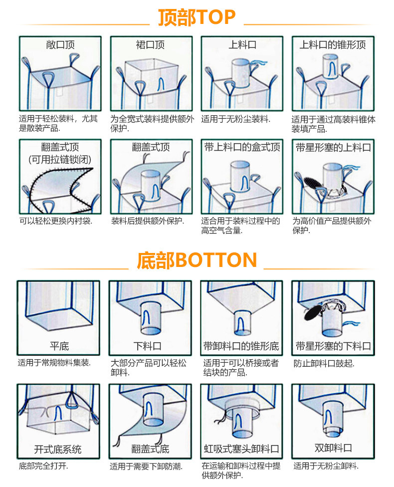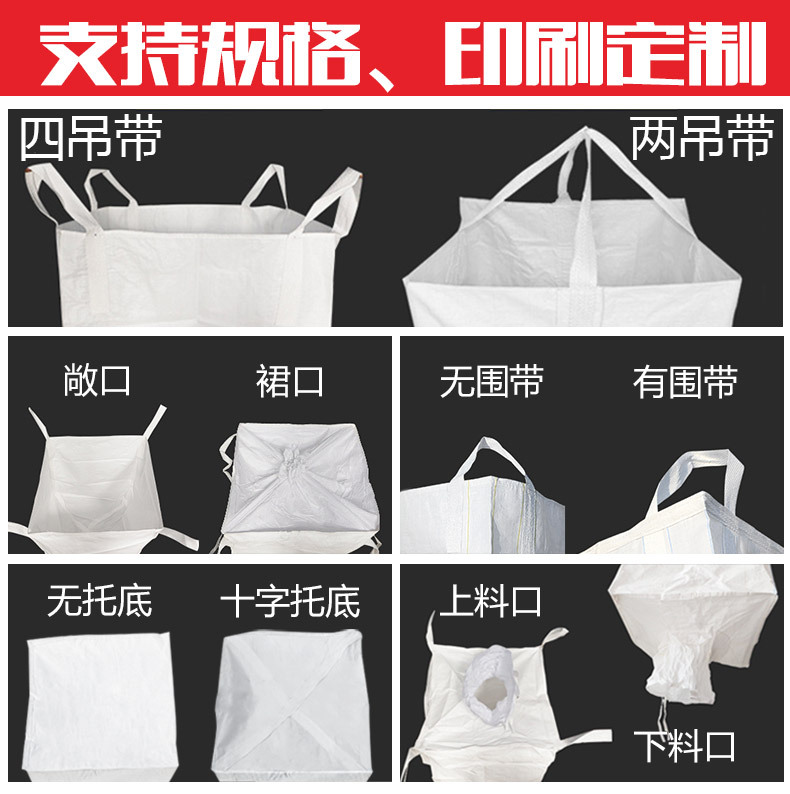 | Especificaciones y modelos | 90*90*110 (parte superior abierta/fondo plano) 4 elevadores sin soporte; blanco; 160,90*90*110 (falda superior/fondo plano inferior) 4 colgantes sin soporte; blanco; 160,90*90*110 (boca superior pequeña/boca inferior pequeña) 4 colgantes sin fondo; blanco; 160,90*90*120 (falda superior/fondo plano inferior) 4 colgantes sin soporte; blanco; 160,90*90*110 (boca superior pequeña/fondo plano) 4 colgantes sin soporte; blanco; 160,90*90*110 (faldón superior/apertura inferior) 4 colgantes sin soporte; blanco; 160,90*90*110 (falda superior/fondo plano inferior) 4 fondos cruzados colgantes; blanco; 160,90*90*110 (parte superior abierta/fondo pequeño) 4 elevadores sin soporte; blanco; 160,90*90*110 (parte superior abierta/fondo plano) soporte transversal; blanco; 160,90*90*120 (parte superior abierta/fondo plano) 4 elevadores sin soporte; blanco; 160,100*100*100 (abierto arriba/fondo plano) 4 elevaciones sin soporte; blanco; 160,90*90*95 (boca superior pequeña/boca inferior pequeña) 4 colgantes sin soporte; blanco; 160,100*100*100 falda superior/fondo plano inferior 4 soportes cruzados colgantes; blanco; 160,100*100*100 (falda superior/fondo plano inferior) 4 colgantes sin soporte; blanco; 160,100*100*100 (parte superior abierta/parte inferior pequeña) 4 elevadores sin soporte; blanco; 160,100*100*100 (boca superior pequeña/boca inferior pequeña) 4 colgantes sin soporte; blanco; 160,100*100*120 (parte superior abierta/fondo plano) 4 elevadores sin soporte; blanco; 160,100*100*120 (falda superior/fondo plano inferior) 4 colgantes sin soporte; blanco; 160,100*100*130 (parte superior abierta/fondo plano) 4 elevadores sin soporte; blanco; 160,Bolsa interior (2*3 metros, adecuada para sacos de descarga de 90/100 cm de ancho); blanco; 160,90*90*120 (boca superior pequeña/boca inferior pequeña) 4 colgantes sin fondo; blanco; 160,110*110*110 abierto superior, soporte cruzado inferior plano; blanco; 160,100*100*140, parte superior abierta y fondo plano, 4 colgantes sin soporte; blanco; 160,Capacidad de carga del pallet: 1.5 toneladas; blanco; 160*110*140,90*90*110 (parte superior abierta/fondo plano) 4 fondo de tres en raya colgante; blanco; 160,100*100*100 (parte superior abierta/fondo plano) 4 tictacToe colgantes; blanco; 160 |