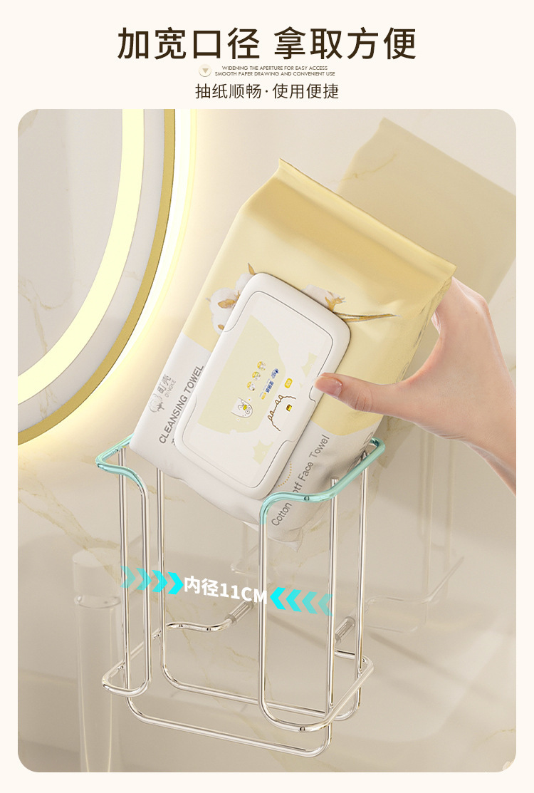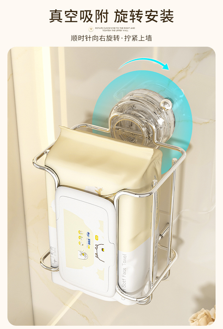 Toallas de papel de baño toallas húmedas rack de almacenamiento de toallas de lavado facial rack de almacenamiento de artículos de baño sin perforación tipo de bombeo de suspensión multifuncional