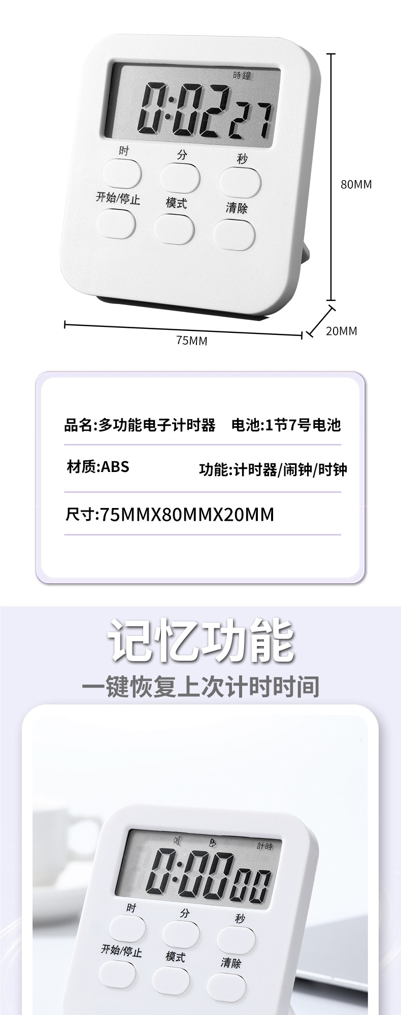 Temporizador de Cuenta atrás temporizador de cocina imprimible recordatorio para hornear conveniente temporizador electrónico cronómetro aprendizaje WL150