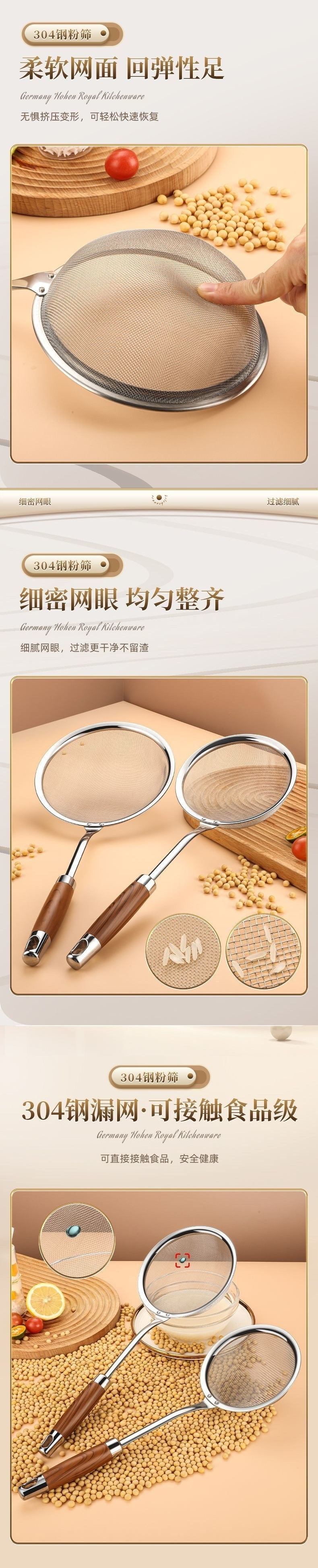 El producto semiacabado no tiene un mango de madera.☆ 304 fugas de acero inoxidable "Manuel de madera 30 mallas 14 # pequeño".☆ 304 fugas de acero inoxidable "Manuel de madera 30 malla 16 # tamaño medio".☆ 304 fugas de acero inoxidable "Manuel de madera 30 mallas 18 # grande".☆ 304 fugas de acero inoxidable de madera de mango 30 mesh 20 # más grande] ☆