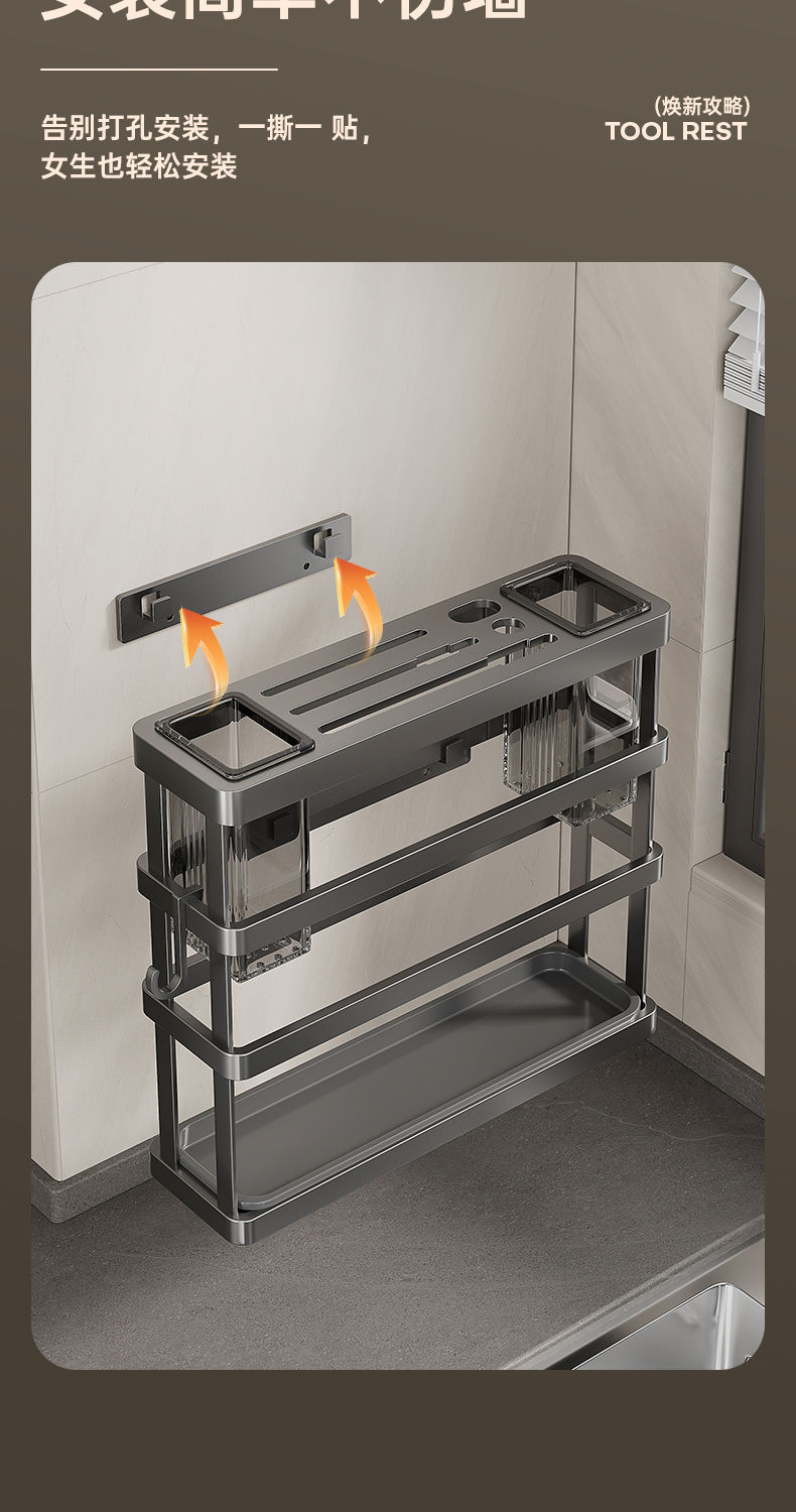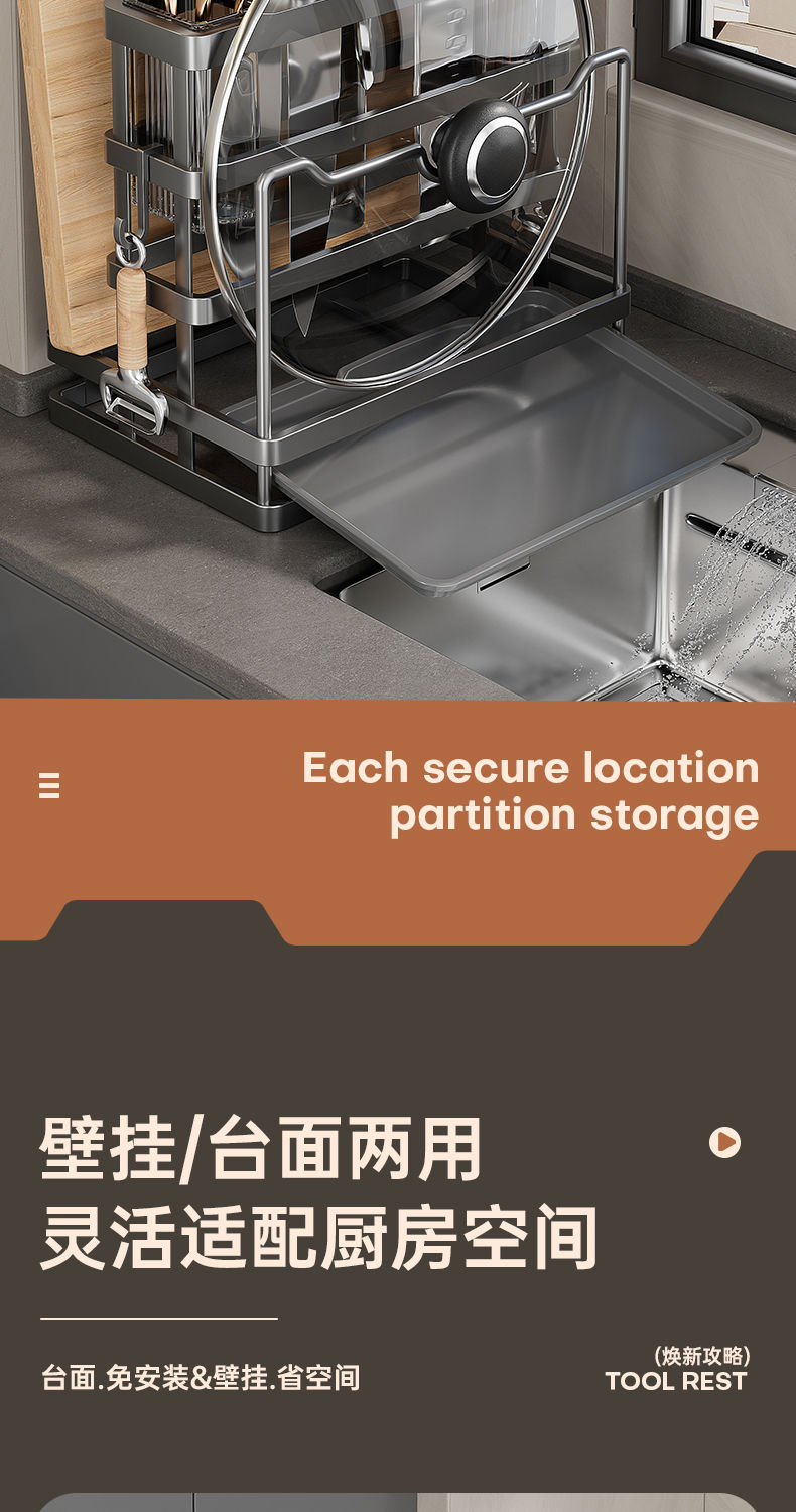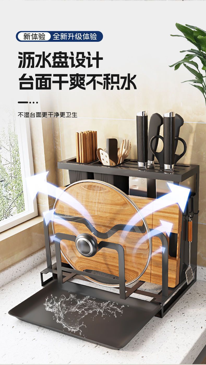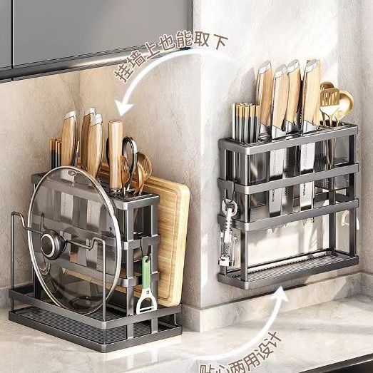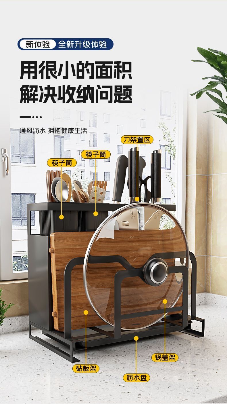 Estante de almacenamiento cuchillo de cocina doméstico herramienta multifuncional tablero de corte integrado estante de cocina tablero de cocina palillos tubo marco de cubierta de olla