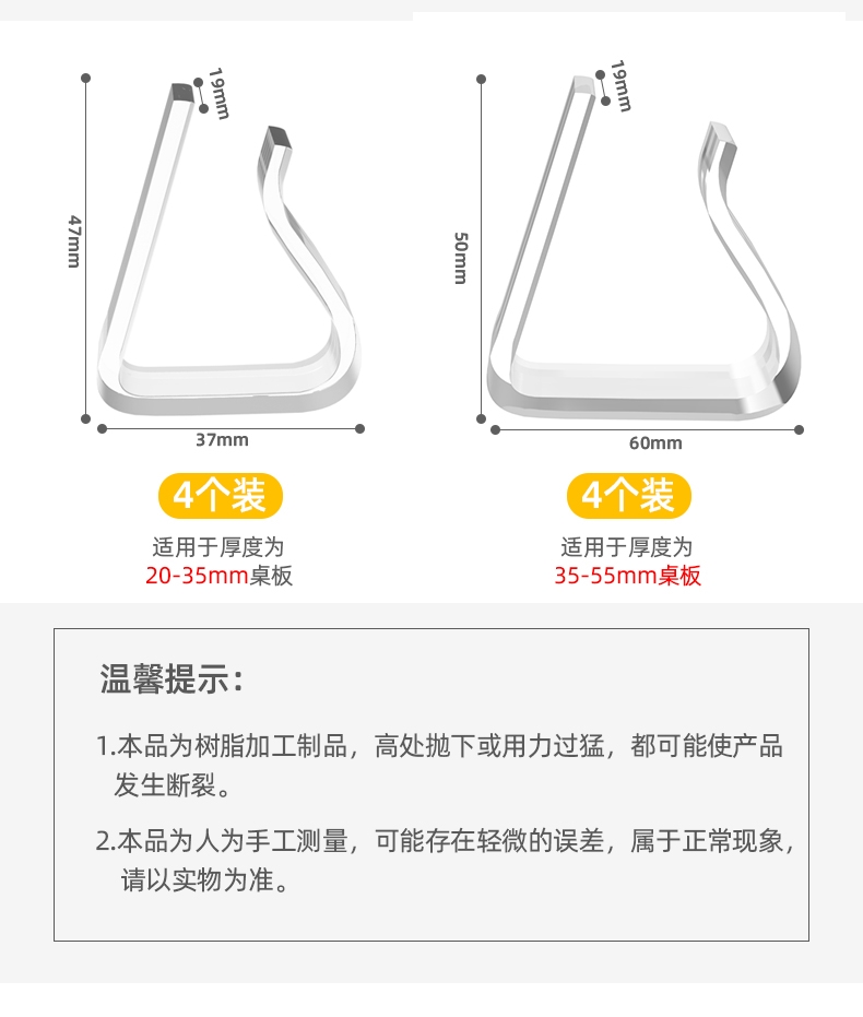 | Color | Largo - 4 paquetes [aplicable a 3.5-5.5cm de espesor de escritorio] ☆, pequeño - 4 paquetes [aplicable a 2 - 3.5cm de espesor de escritorio] ☆, pequeño - 8 paquetes [aplicable a 2 - 3.5cm de espesor de escritorio] ☆, grande - 8 paquetes [aplicable a 3 - 5.5cm de espesor de escritorio] ☆ |