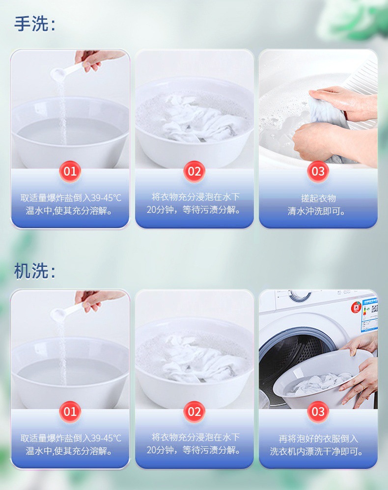 Sal explosiva lavandería desmancha desmofoque blanqueador de ropa blanca desamarillado blanqueador desmancha lavandería en polvo