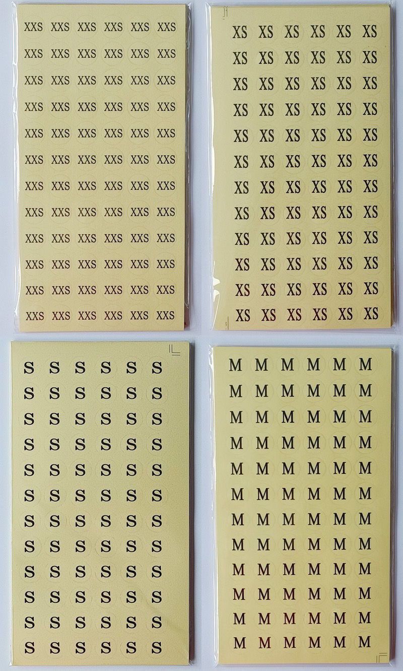 | Especificaciones y modelos | Código de promedio (15 piezas de 1080 pegatinas) ★, tamaño transparente opcional 10 piezas ★, XXS (15 de 1080 posts) ★, XS (15 de 1080 posts) ★, s (por 15 de 1080) ★, M (15 de 1080) ★, L (15 de 1080) ★, XL (15 de 1080) ★, XXL (15 de 1080) ★, 3XL (15 de 1080) ★, 4XL (15 de 1080) ★, 5XL (15 de 1080) ★, 6XL (15 de 1080) ★ |