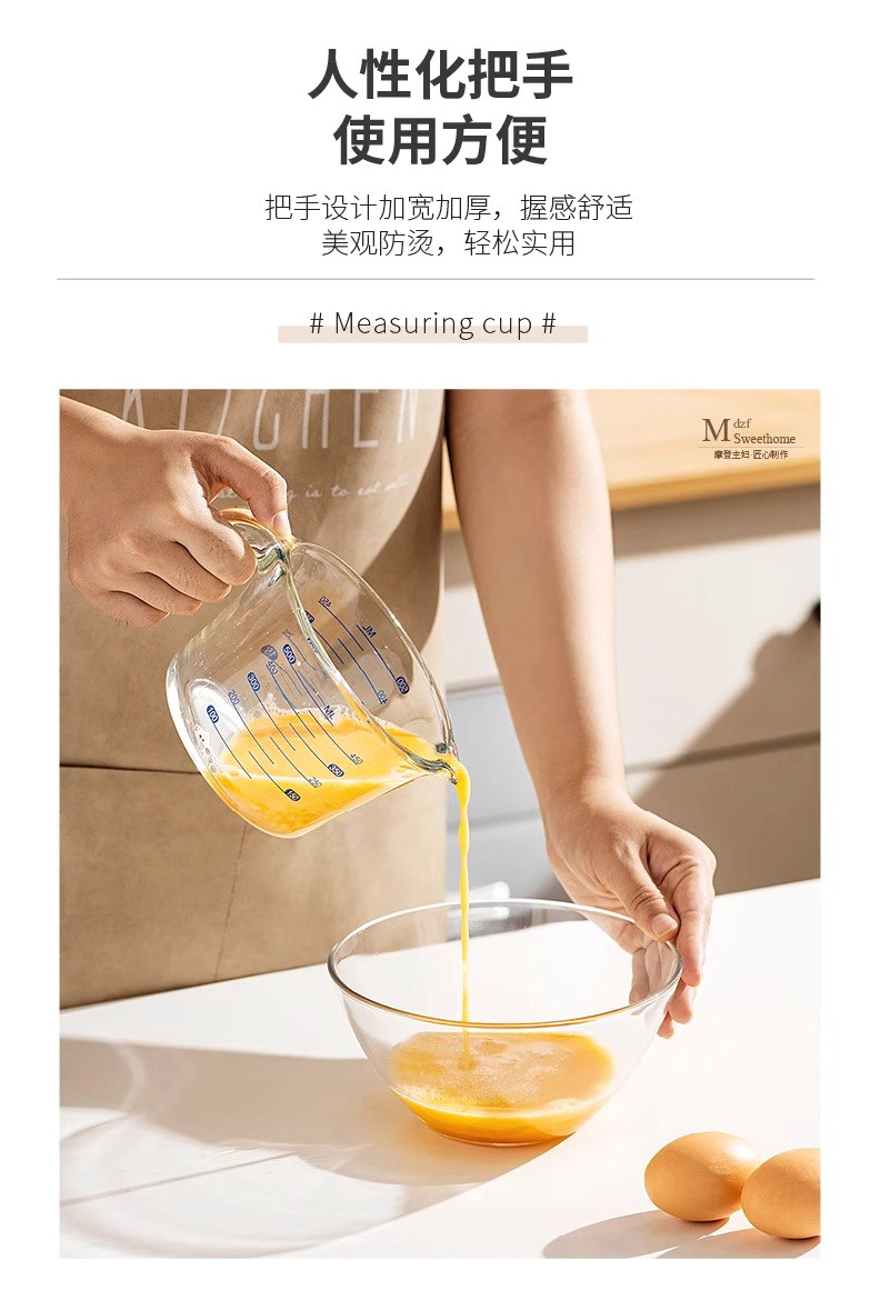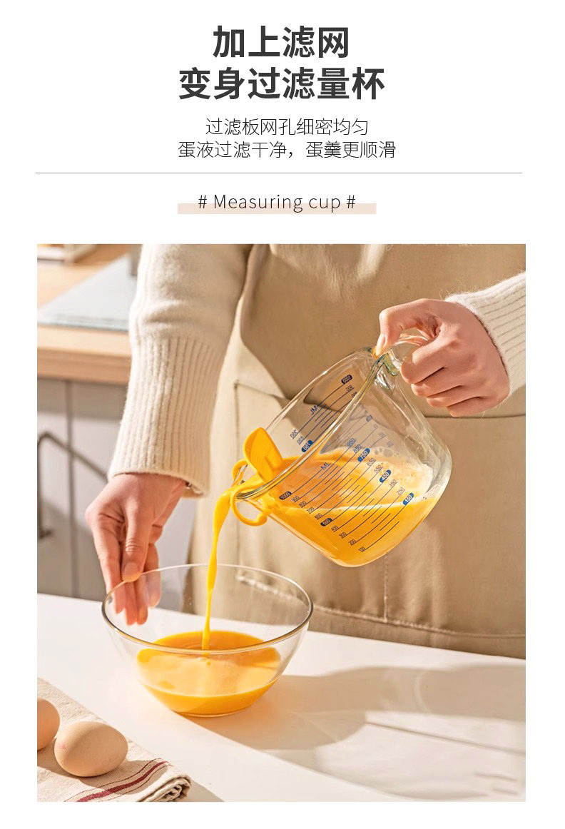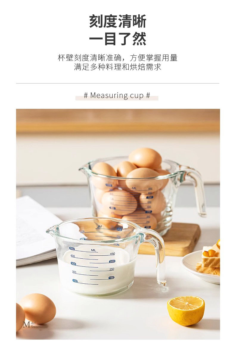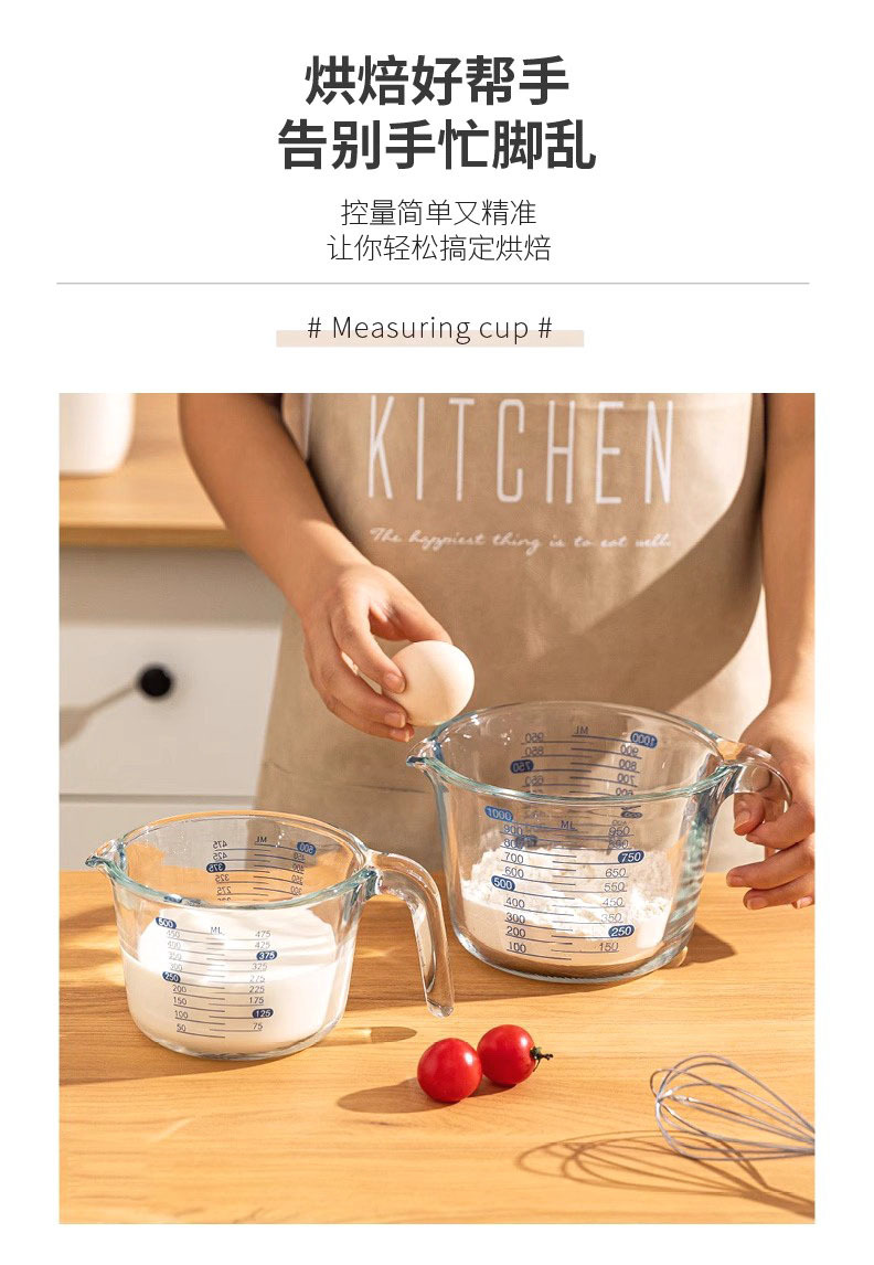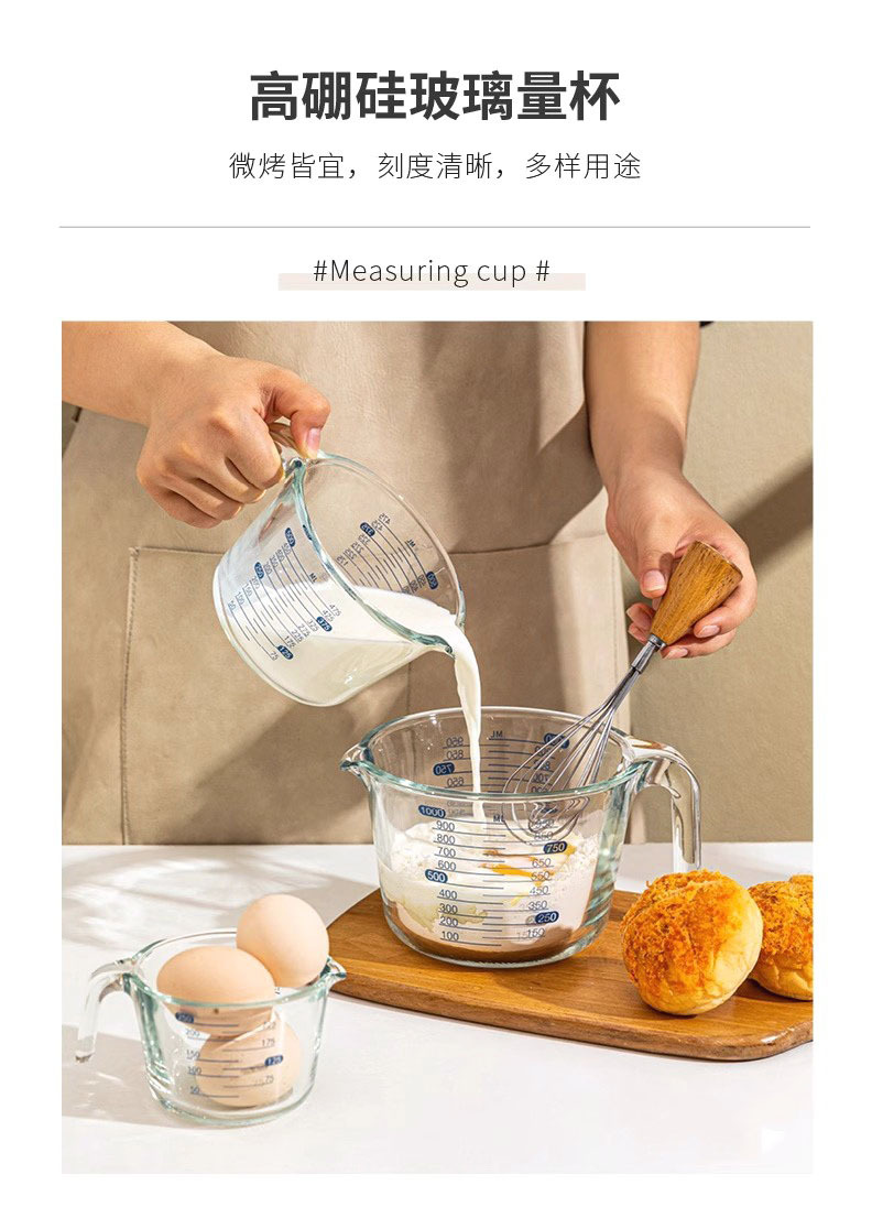 Taza de medición de vidrio para herramientas de horneado resistentes a altas temperaturas para cocina Taza de huevo con taza de leche con escala