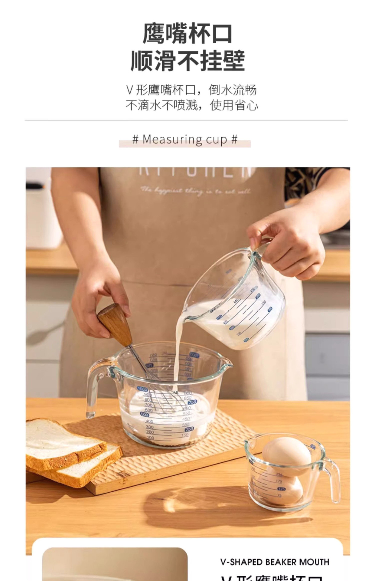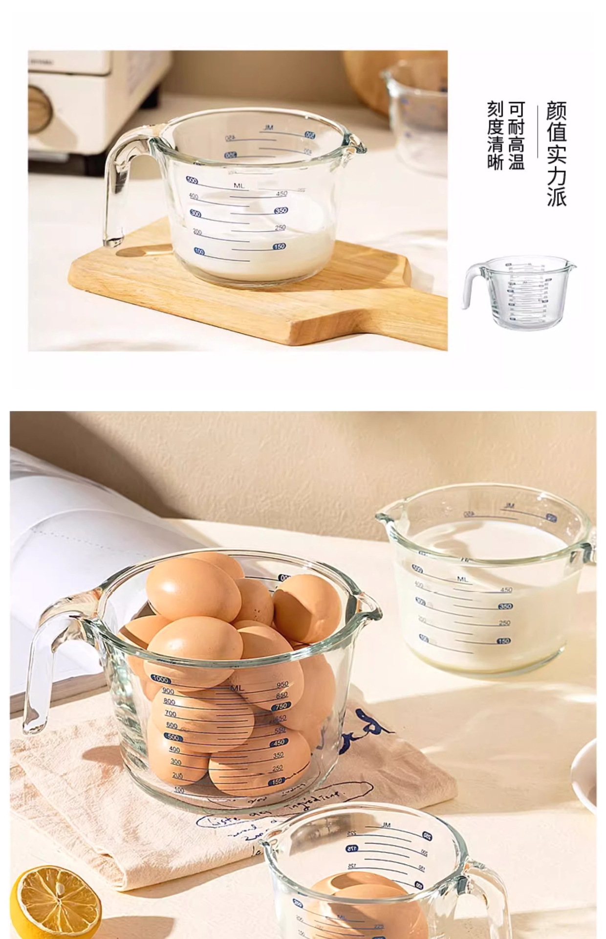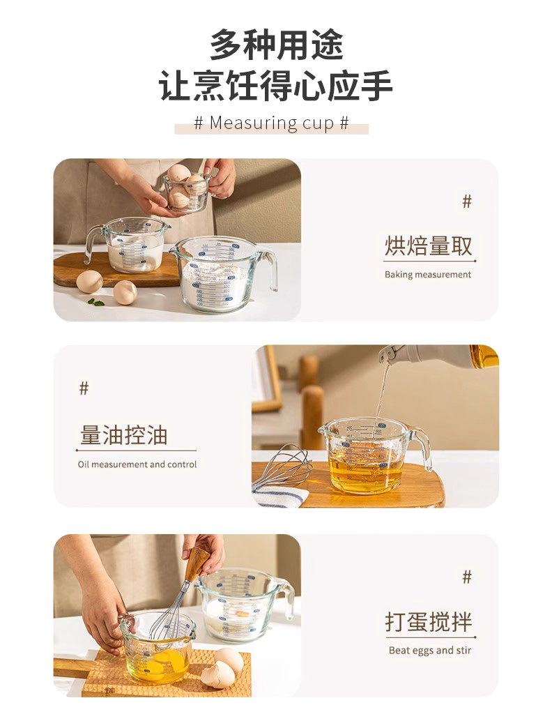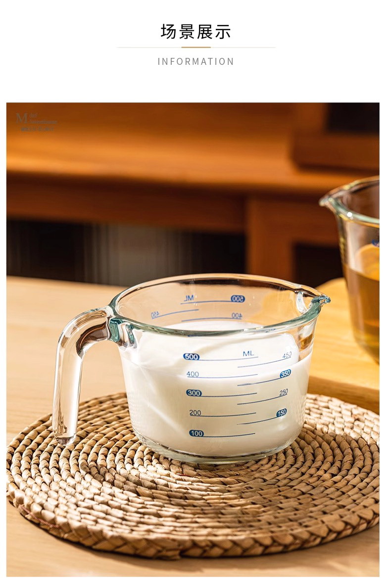Taza de medición de vidrio para herramientas de horneado resistentes a altas temperaturas para cocina Taza de huevo con taza de leche con escala