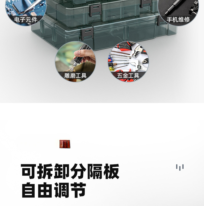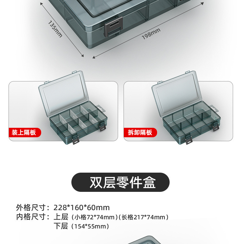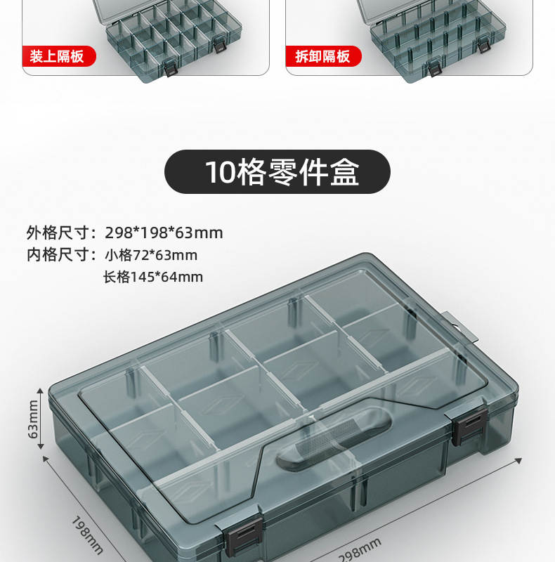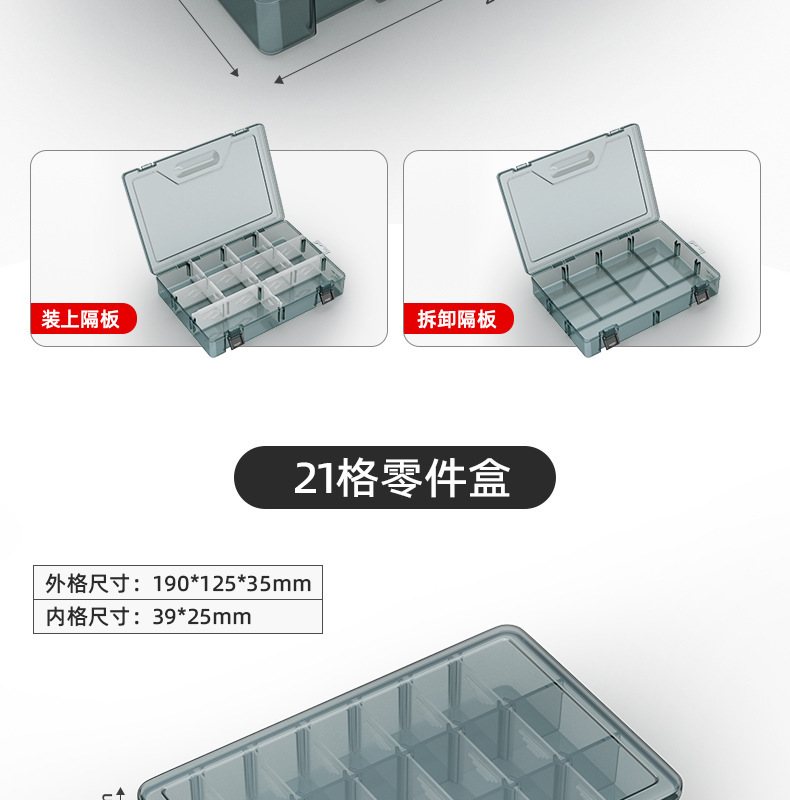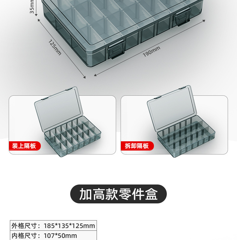 | Especificaciones y modelos | Mini desmontable transparente con 10 cuadrículas pequeñas, "barras de refuerzo de mejora" gruesas sin cuadrículas pequeñas, "barras de refuerzo de mejora" gruesas 6 cuadrículas grandes desmontables, "barras de refuerzo de mejora" gruesas 21 cuadrículas pequeñas desmontables, "barras de refuerzo de mejora" gruesas 8 cuadrículas grandes desmontables, "barras de refuerzo de mejora" gruesas 10 cuadrículas grandes desmontables, "barras de refuerzo de mejora" gruesas 18 cuadrículas medianas desmontables, "barras de refuerzo de mejora" gruesas dos capas desmontables, "barras de refuerzo de mejora" gruesas y altas desmontables,[2] tamaño pequeño sin división grueso, [2] grueso 6 compartimentos desmontables, [2] grueso 21 compartimentos desmontables, [2] grueso 8 compartimentos desmontables, [2] grueso 10 compartimentos desmontables, [2] grueso 18 compartimentos desmontables, [2] grueso doble capa desmontable, [2] grueso y alto desmontable, 5] caja de almacenamiento de refuerzo grueso combinado |