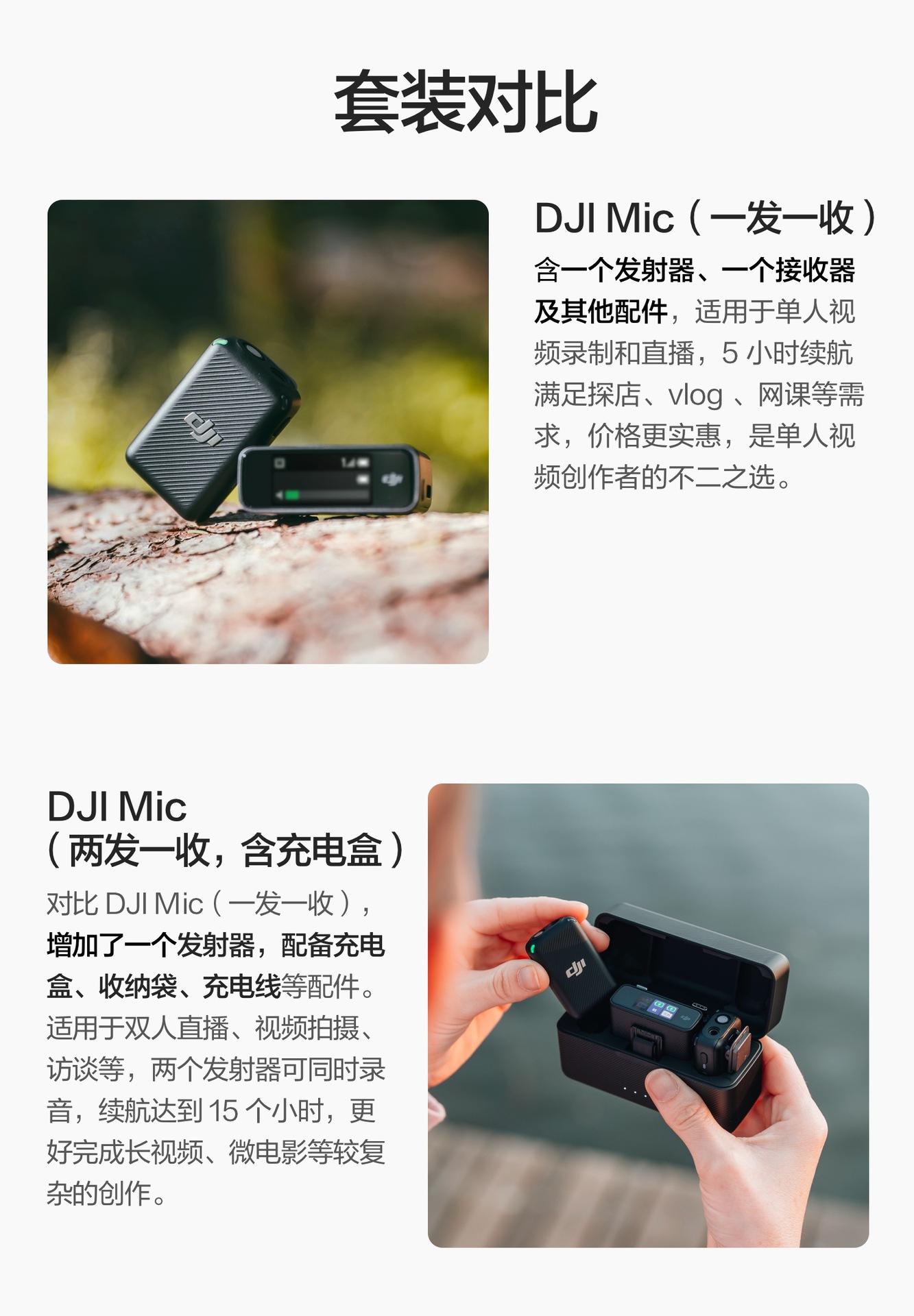 | Color | DJI Mic One Drag Two, DJI Mic One Drag One, Nuevo producto] DJI Mic 2 (dos envíos y una carga) [estándar oficial], Nuevo producto] DJI Mic 2 (un envío y una carga) [estándar oficial] |