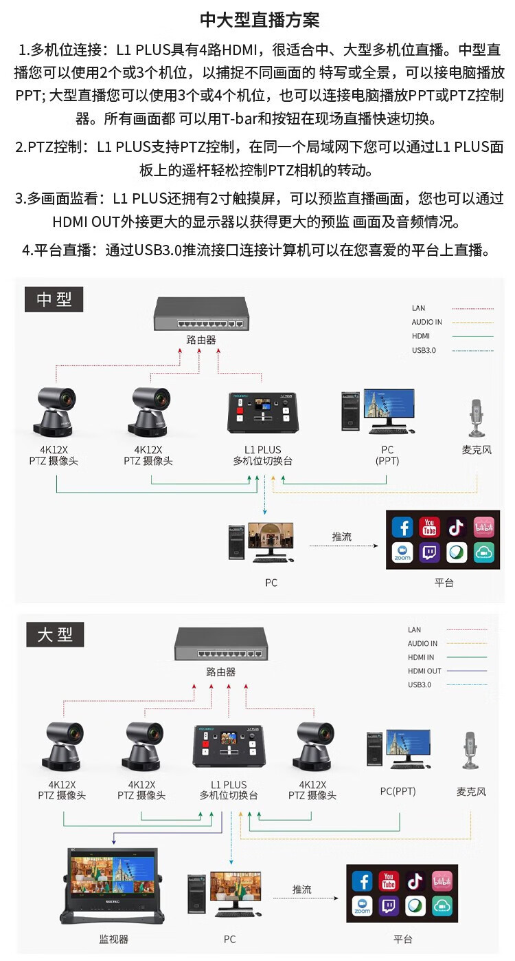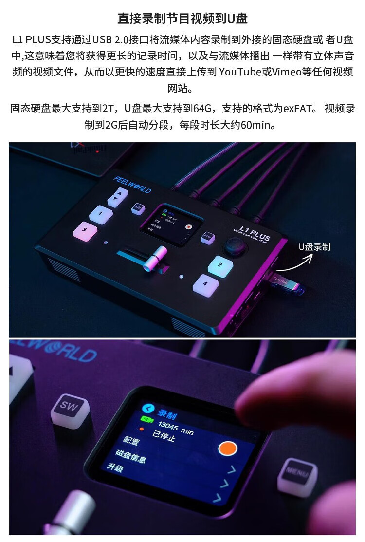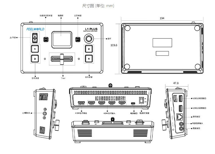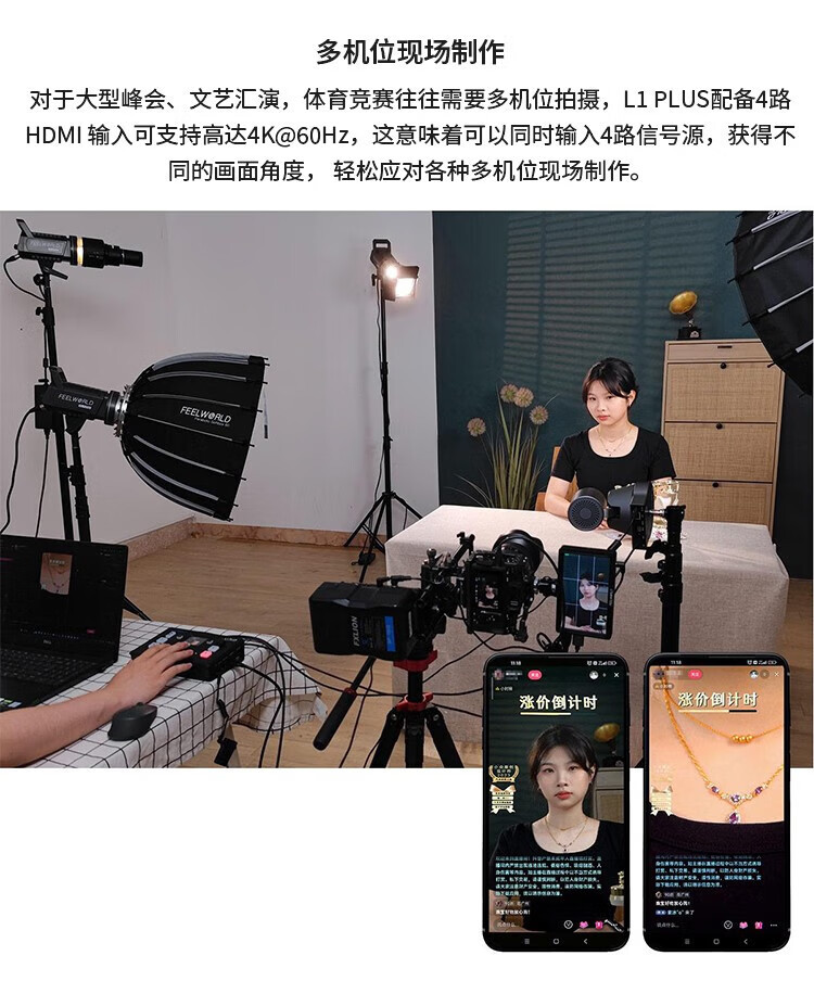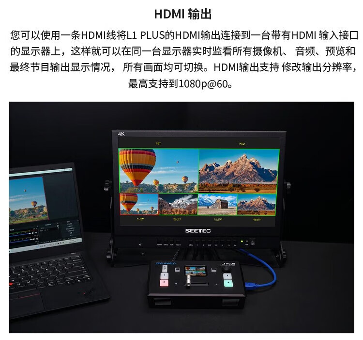 Fuweide L1 PLUS estación de conmutación de guía de transmisión de canal de alta definición en el sitio de producción de 4 canales de HDMI