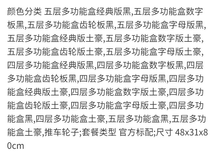 | Color | Cuatro capas de caja multifuncional negro, cinco capas de caja multifuncional clásica negro, cinco capas de caja multifuncional digital negro, cinco capas de caja multifuncional placa de engranajes negro, cinco capas de caja multifuncional letra negro, cinco capas de caja multifuncional clásica versión local, cinco capas de caja multifuncional digital versión local, cinco capas de caja multifuncional versión de engranajes local, cinco capas de caja multifuncional letra versión local, cuatro capas de caja multifuncional versión clásica negro, cuatro capas de caja multifuncional placa digital negro, cuatro capas de caja multifuncional placa de engranajes negro, cuatro capas de caja multifuncional letra negro, Cuatro capas de caja multifuncional versión clásica de la casa, cuatro capas de caja multifuncional versión digital de la casa, cuatro capas de caja multifuncional versión de engranaje de la casa, cuatro capas de caja multifuncional versión alfabética de la casa, cuatro capas de caja multifuncional de la casa, cinco capas de caja multifuncional de la casa negra, cinco capas de caja multifuncional de la casa |