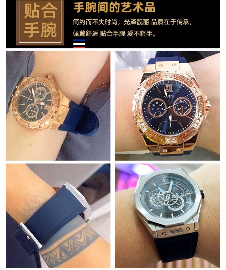 FUENTE fabricante inferior de silicona primera capa correa de reloj de piel de vaca a prueba de sudor Plaid multicolor inferior de silicona correa de reloj de cuero 12 ~ 20