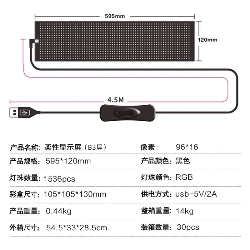| Especificaciones | B3 LED pantalla flexible tamaño 595 * 120mm píxeles 96 * 16 [Surplife AI voz + control remoto], B1 LED pantalla flexible tamaño 374 * 92mm píxeles 64 * 16 [Surplife AI voz + control remoto], B2 LED pantalla flexible tamaño 173 * 70mm píxeles 32 * 16 [Surplife AI voz + control remoto], controlador de interruptor de voz fuera de línea |