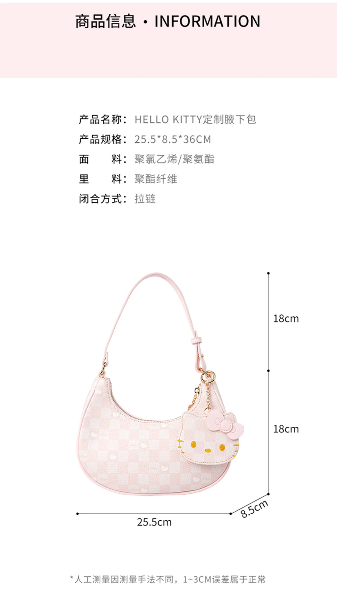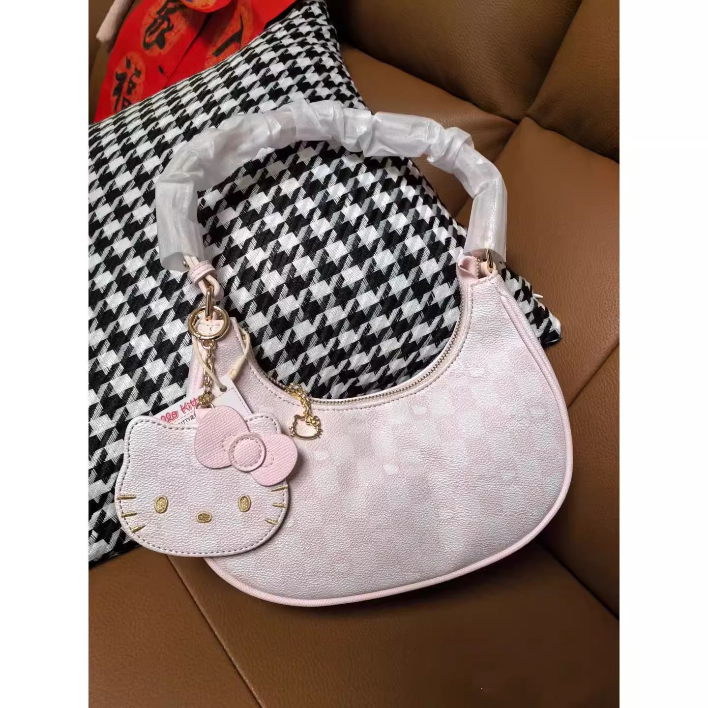 2025 nueva bolsa de polvo para las axilas de Kitty cuadros de tablero de ajedrez dulce adorable media luna bolso de hombro diseño de nicho