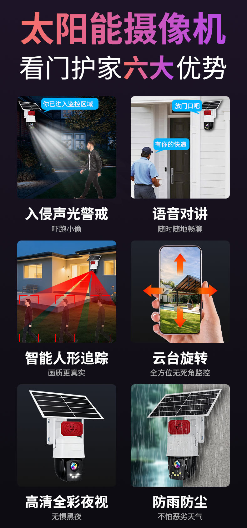 Fabricante suministro directo sin energía sin red AOV monitor solar cámara doméstica HD 360 ° cámara remota