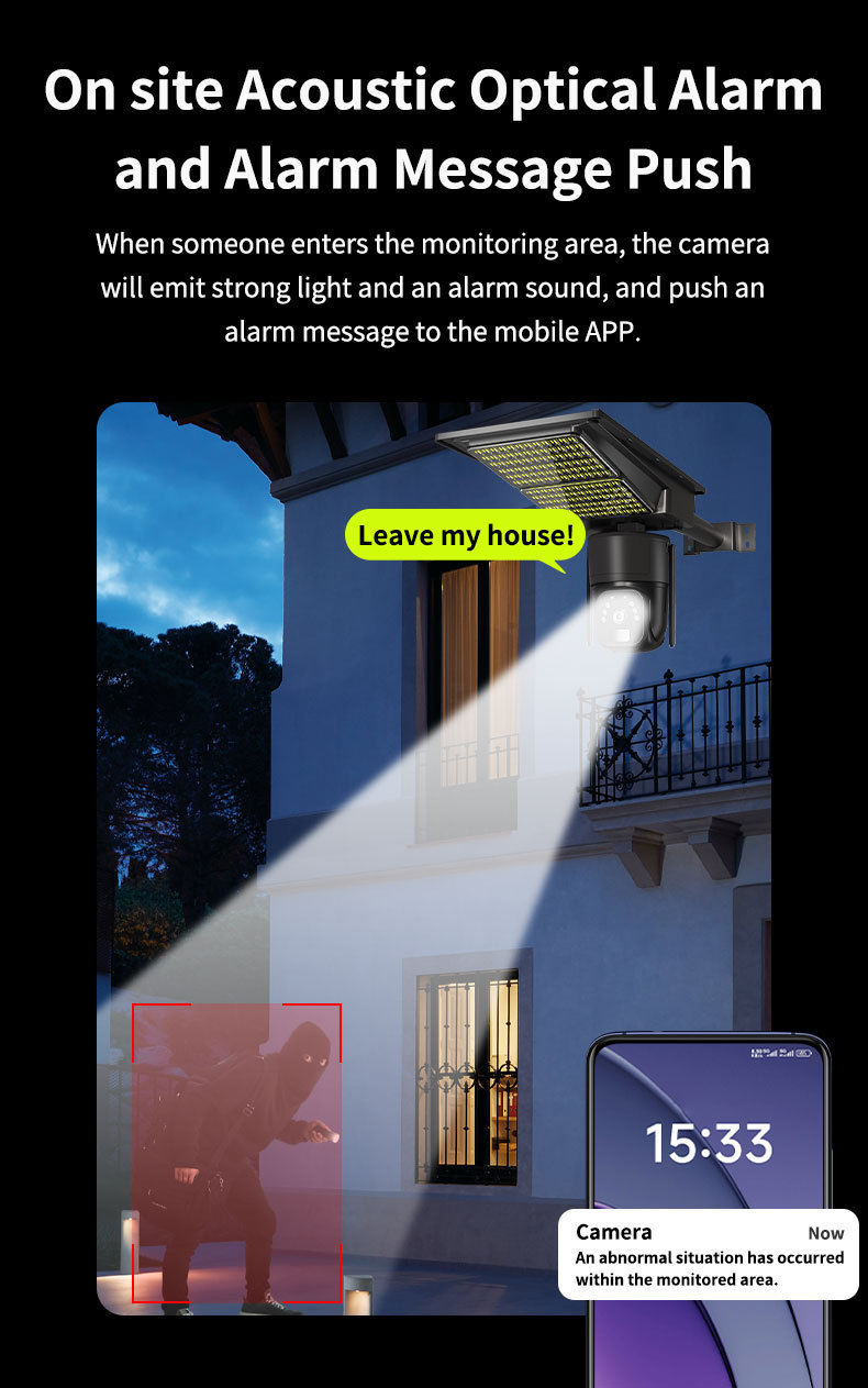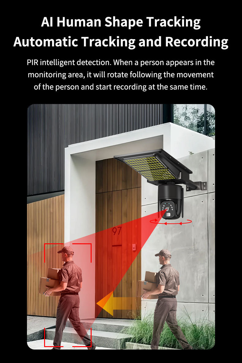 Graffiti explosivo transfronterizo cámara de vigilancia exterior 4G visión nocturna a todo color detección humanoide AI sin perforación y cableado