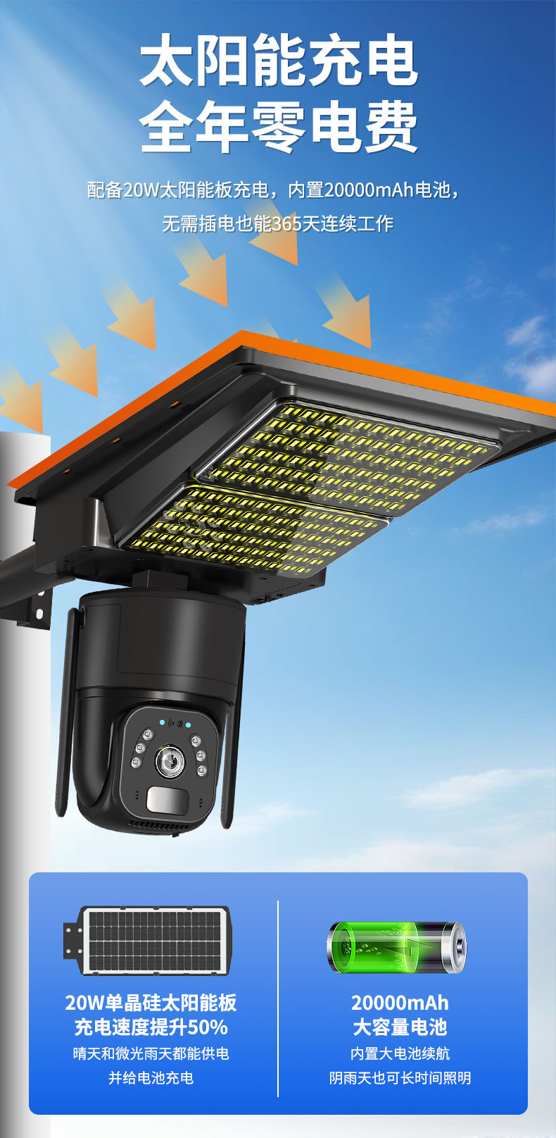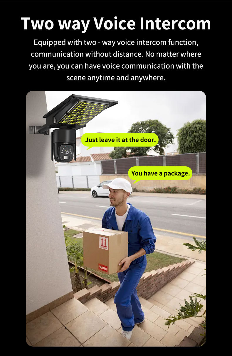 Cámara binocular WiFi inalámbrica de 8 millones de píxeles, monitoreo solar 4G, zoom de 20x, cámara solar de alta definición