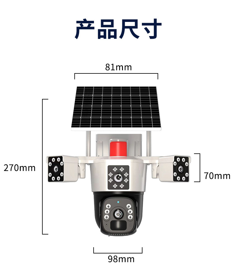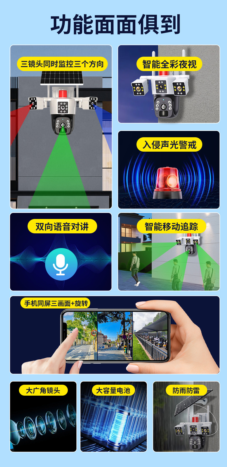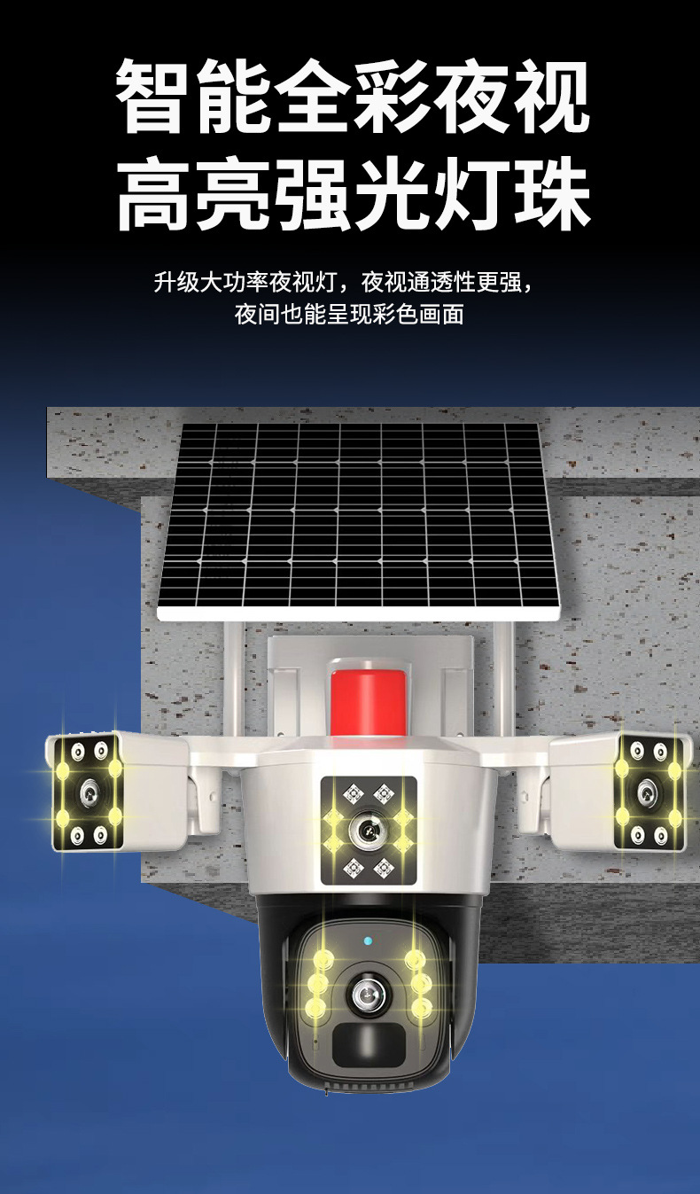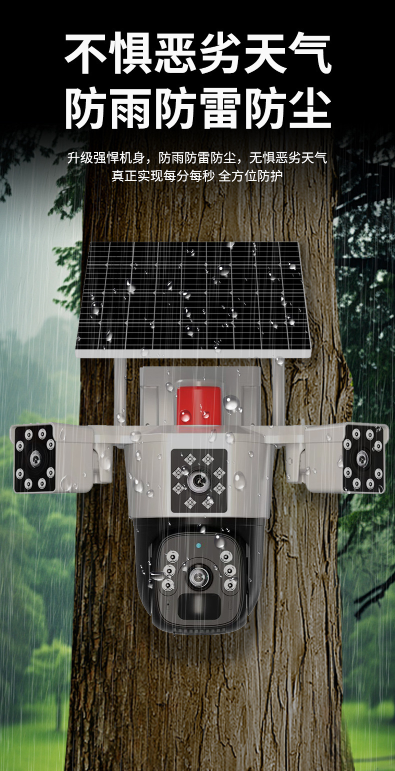 1: 600万IP66级室外防水低功耗太阳能三目摄像机,H.264