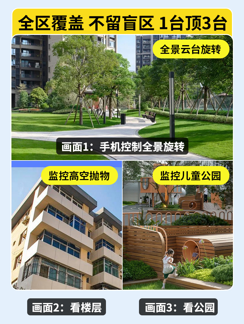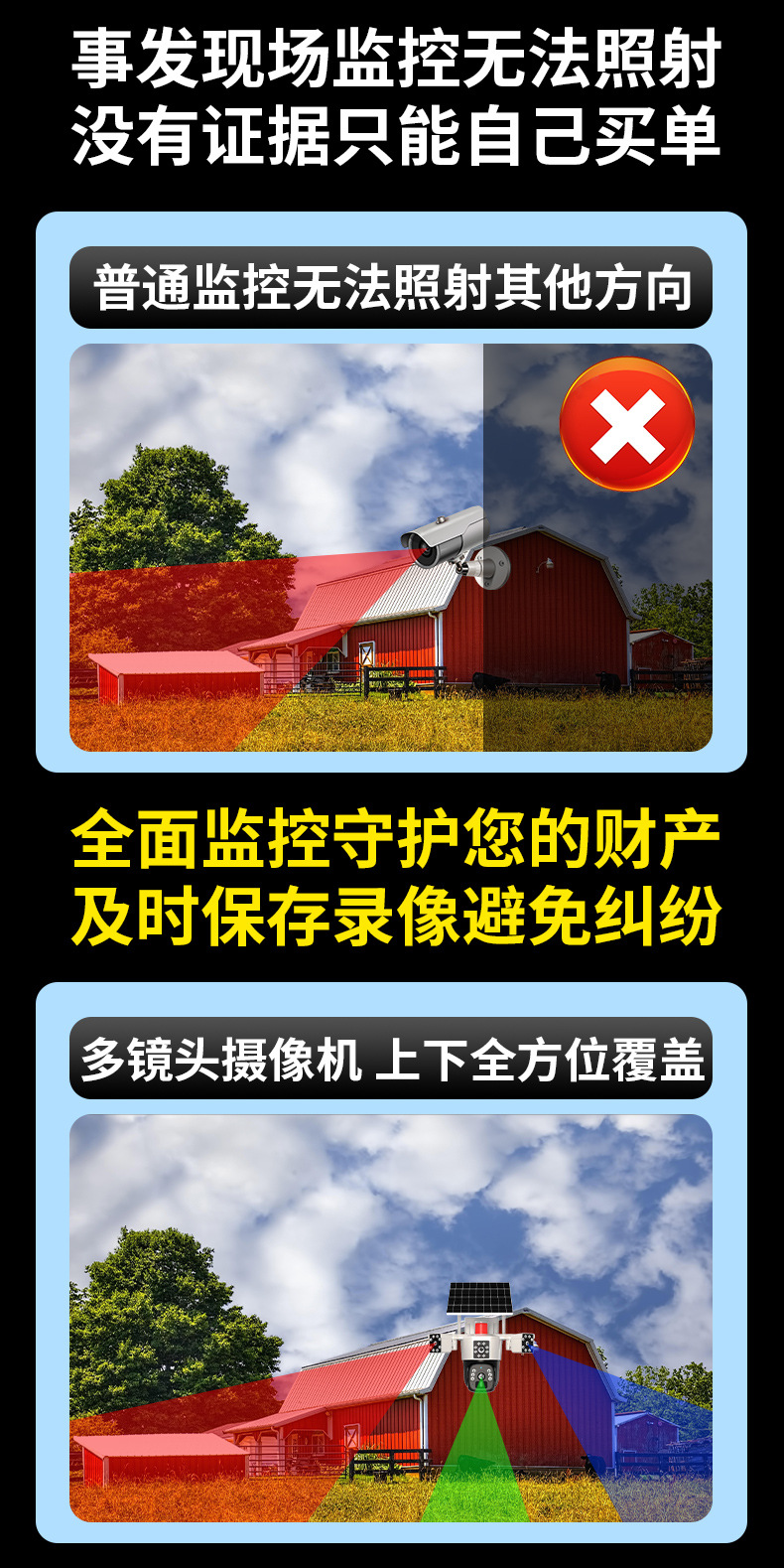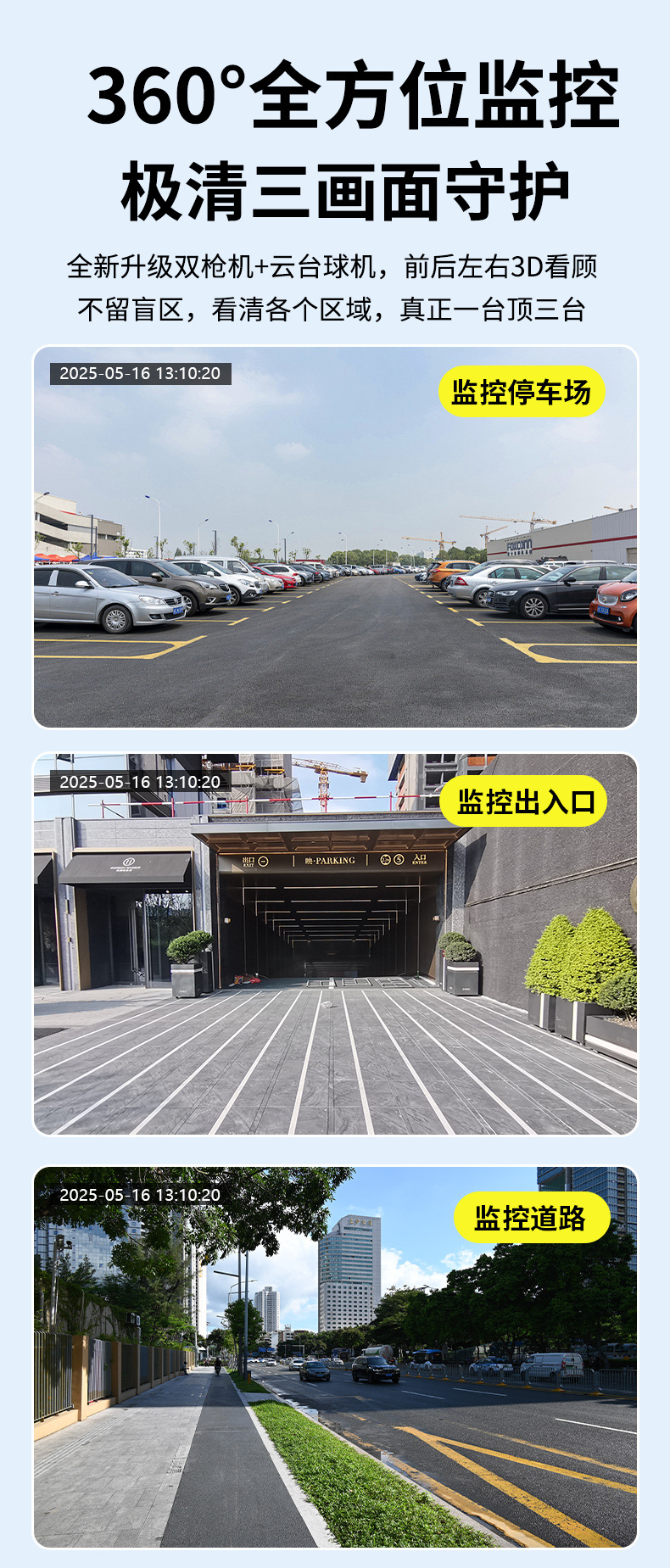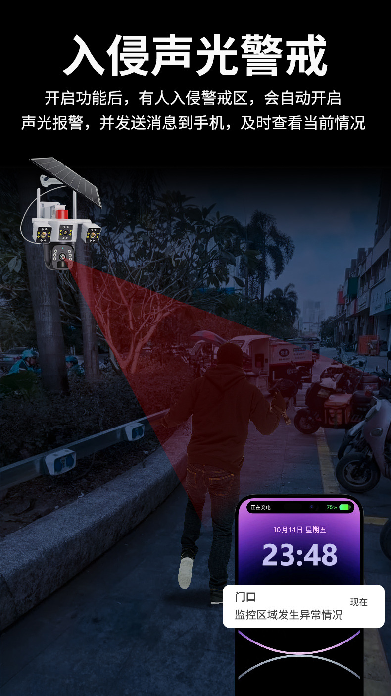 1: 600万IP66级室外防水低功耗太阳能三目摄像机,H.264