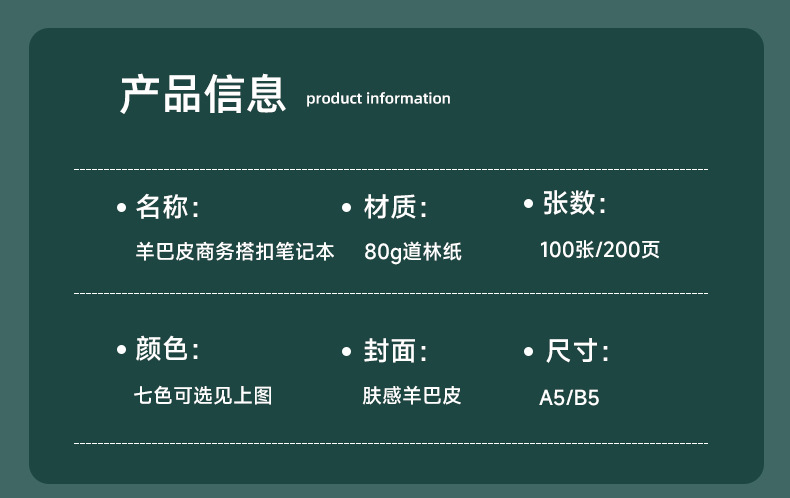 | Colores de la cubierta | A6 color/cuero, se envía 1 unidad al azar.,A5 color/cuero, se envía 1 unidad al azar.,Rosa A5 / Cuero magnético con tacto suave - Serie 54,Negro A5 / Cuero magnético con tacto suave - Serie 54,Rojo A5 / Cuero magnético con tacto suave - Serie 54,Gris A5 / Cuero magnético con tacto suave - Serie 54,Azul claro A5 / Cuero magnético con tacto suave - Serie 54,Azul oscuro A5 / Cuero magnético con tacto suave - Serie 54,Marrón A5 / Cuero con tacto suave y hebilla magnética - Serie 54,Cuaderno A5 azul oscuro/cuero suave al tacto-serie 60,Cuaderno gris A5/cuero suave-serie 60,Cuaderno negro A5/cuero suave-serie 60,Cuaderno A5/marrón de piel suave-serie 60,Cuaderno A5/rosa de cuero suave-serie 60,Cuaderno A5 rojo/cuero suave-serie 60,Libro A5 azul claro/cuero suave al tacto-serie 60,Caja de regalo de alta gama personalizada serie-54 |