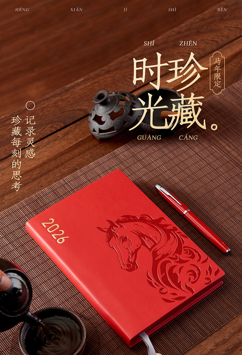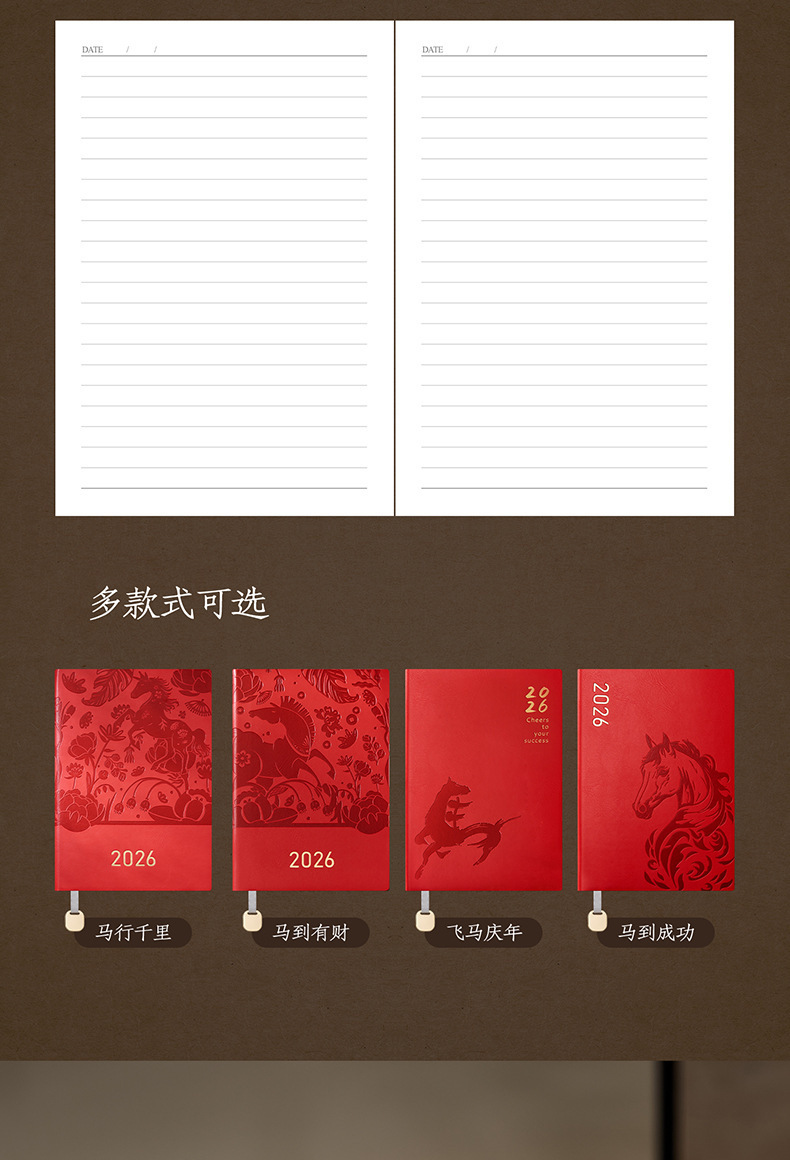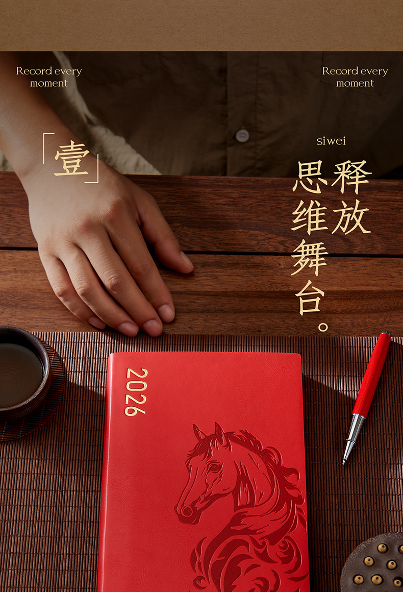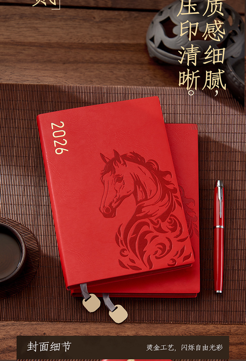 2026 nuevo caballo año cuaderno de notas de oficina de negocios de estilo nacional A5 avanzado puede ordenar logotipo impreso