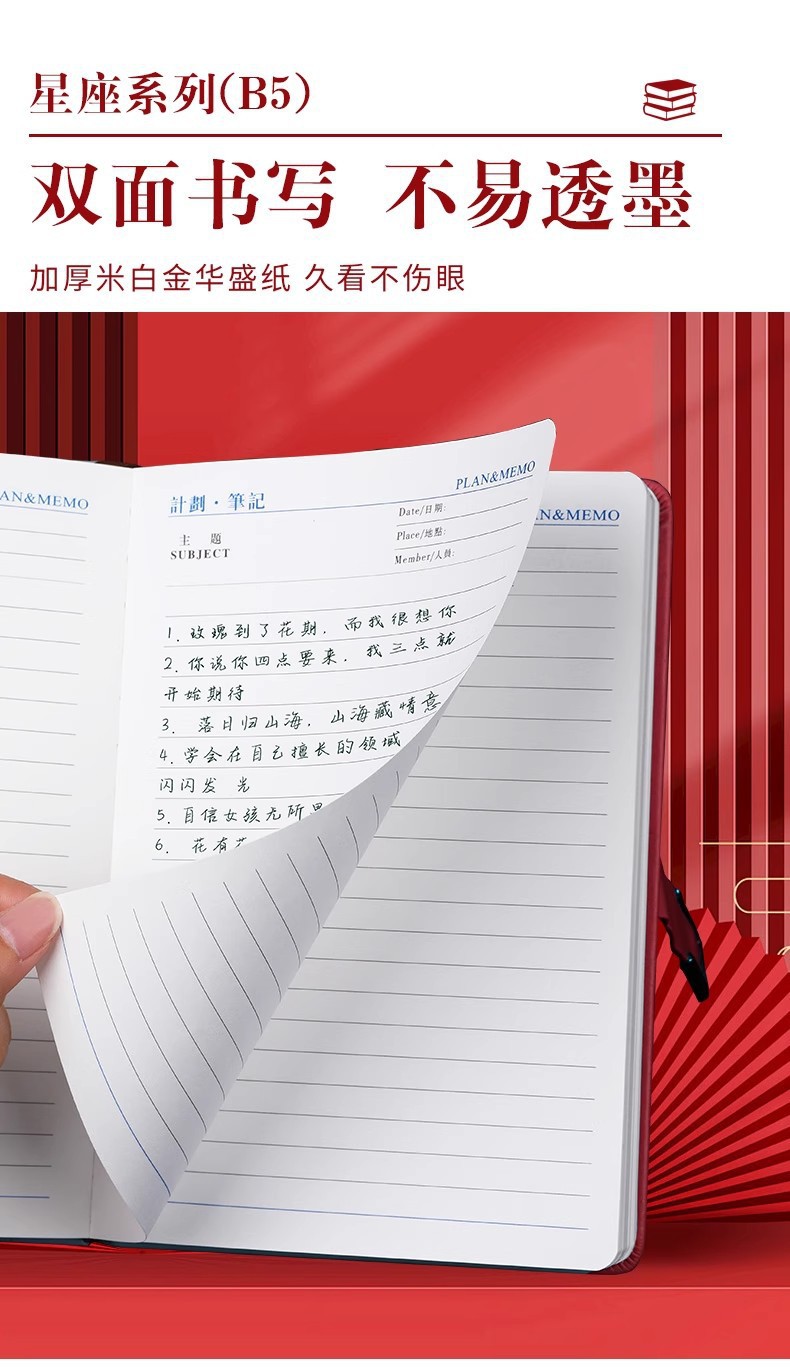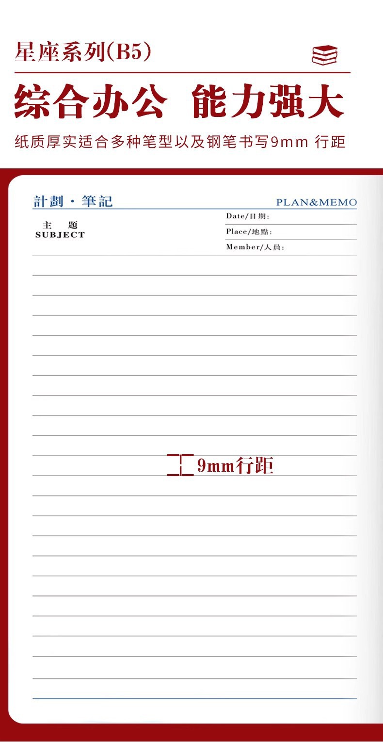 | Color de la portada | Botón de flores rojo-dorado B5 [300 páginas], Botón de flores azul-dorado B5 pálido [300 páginas], Botón de flores azul-dorado B5 lago [300 páginas], Botón de flores marrón-dorado B5 de negocios [300 páginas], Botón de flores naranja-dorado B5 vivo [300 páginas], Botón de flores gris-dorado B5 caballero [300 páginas], Botón de flores azul-dorado B5 tesoro [300 páginas], Botón de flores negro-dorado B5 clásico [300 páginas], Botón de flores rojo-dorado B5 Botón de barra paralela B5 [300 páginas], B5 Azul pálido - hebilla de barra paralela [300 páginas], B5 Lago Azul - hebilla de barra paralela [300 páginas], B5 Negócio marrón - hebilla de barra paralela [300 páginas], B5 Energía naranja - hebilla de barra paralela [300 páginas], B5 Caballero Grey - hebilla de barra paralela [300 páginas], B5 Azul Treasure - hebilla de barra paralela [300 páginas], B5 Clásico Negro - hebilla de barra paralela [300 páginas] |
