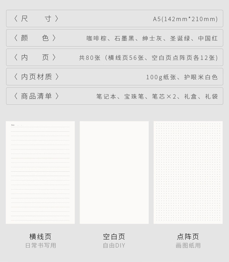 | Color de la portada | Negro-solo, marrón-solo, gris-solo, verde-solo, rojo-solo, azul-solo, [Premium] marrón + lápiz de firma de latón + recarga, [Premium] negro + lápiz de firma de latón + recarga, [Premium] rojo + lápiz de firma de latón + recarga, [Premium] verde + lápiz de firma de latón + recarga, [Premium] gris + lápiz de firma de latón + recarga |
