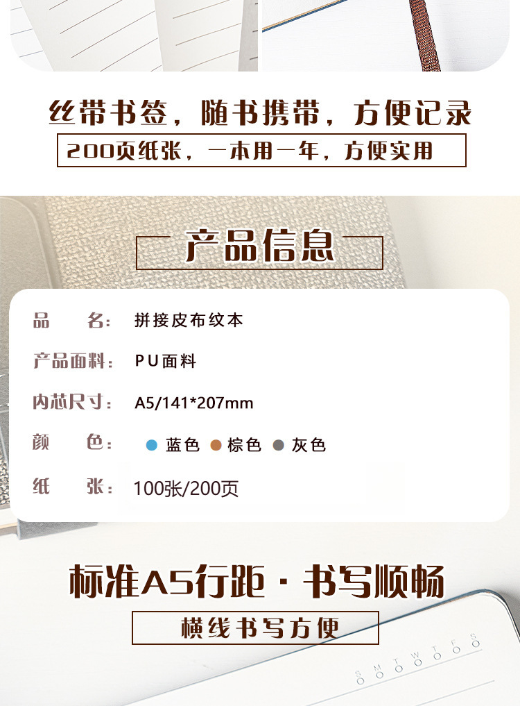 Libreta de negocios con páginas completamente rayadas para exportación transfronteriza, bloc de notas A5 con banda elástica, diario simple de PU.