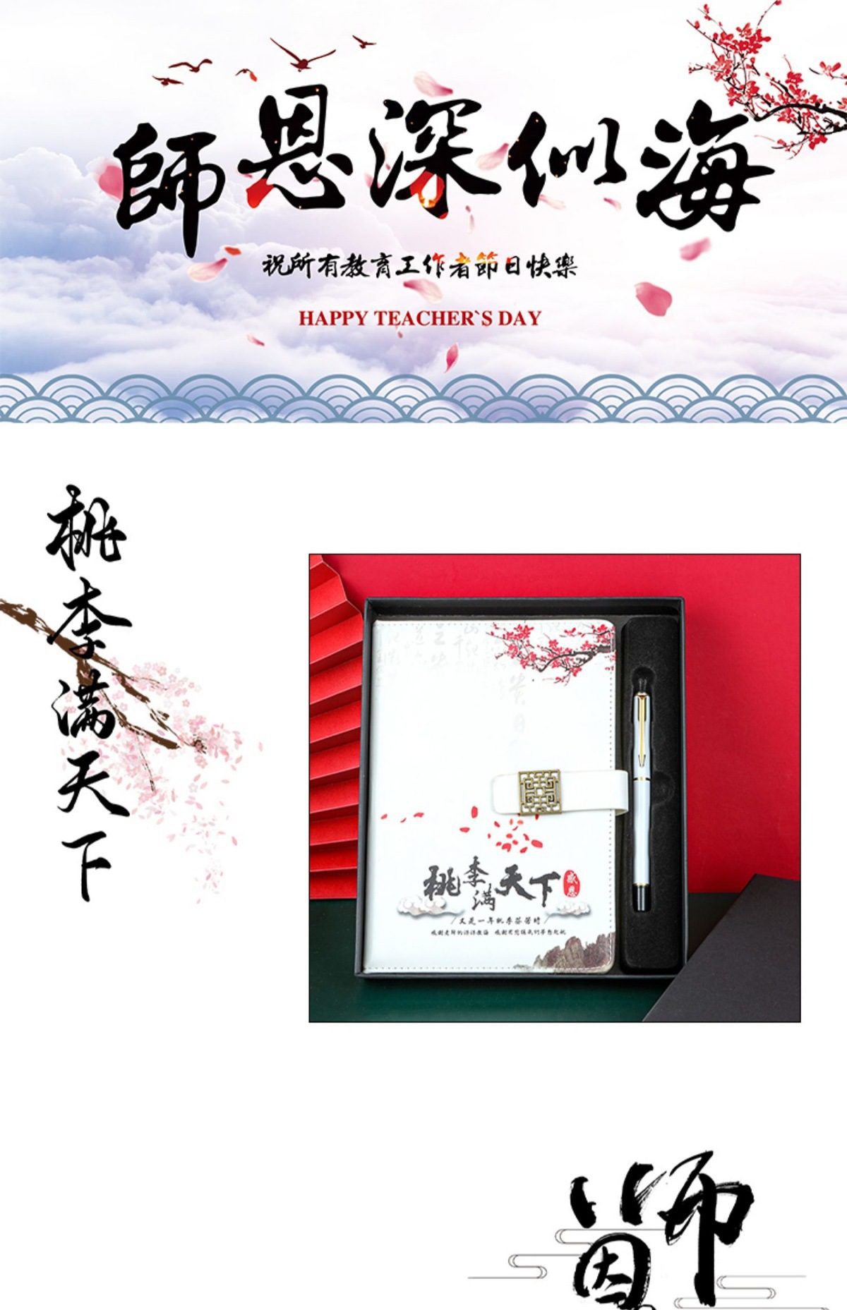 | Especificaciones | El maestro ha trabajado duro + pluma blanca + caja negra plana, la gracia del maestro es inolvidable + pluma blanca + caja negra plana, melocotón y pluma están llenos del mundo + pluma blanca + caja negra plana, libro en polvo (gracias a la enseñanza del maestro) + pluma + caja en polvo, libro en polvo (la gracia del maestro ha trabajado duro) + pluma + caja en polvo |