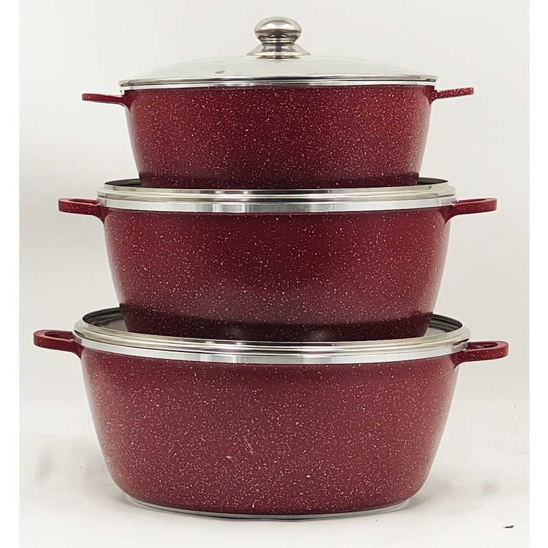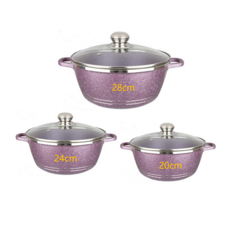 Comercio exterior transfronterizo Olla antiadherente de piedra médica Juego de ollas domésticas negras Juego de ollas para freír y wok Juego de ollas de sopa Olla de aluminio al por mayor