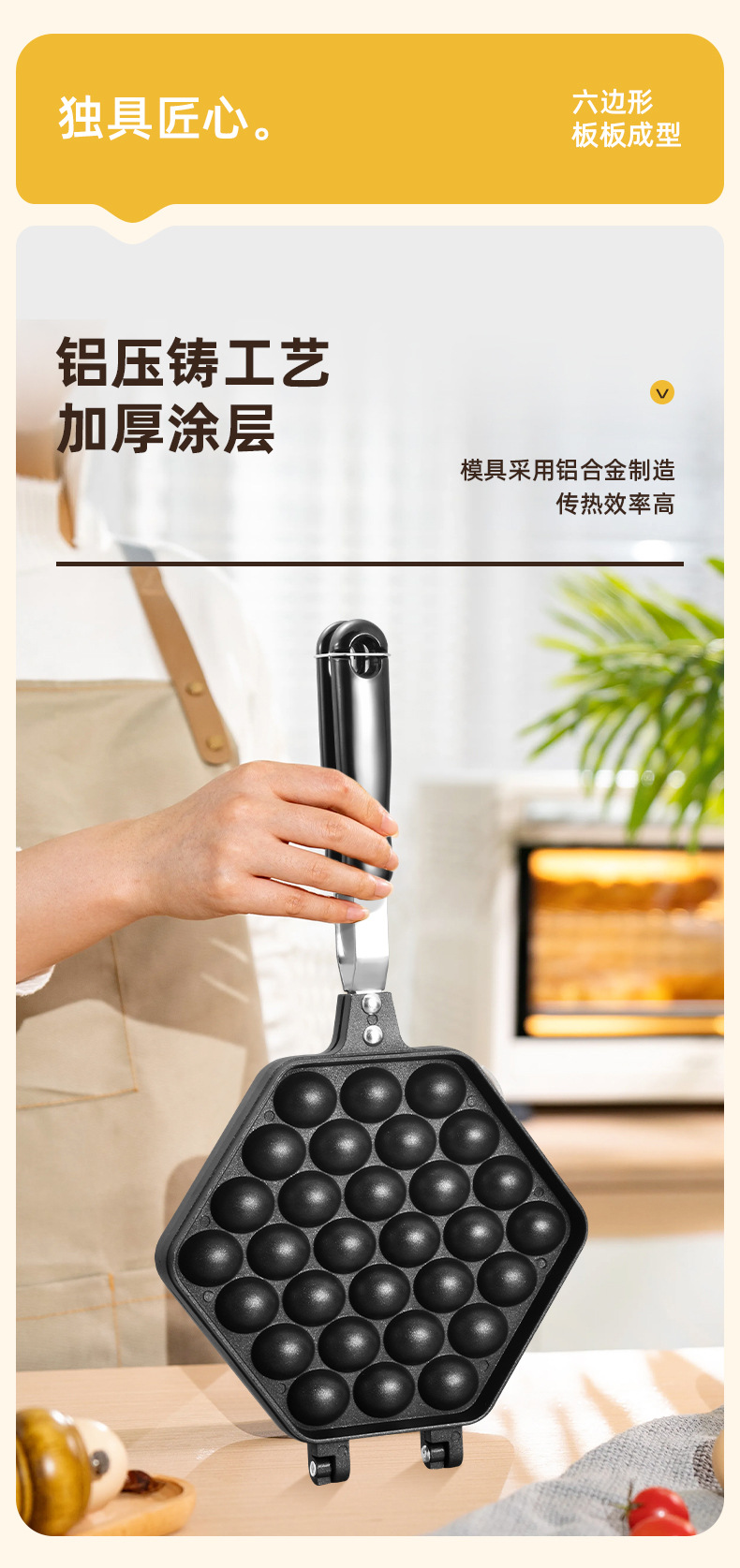 2.不粘厨具传热均匀,使用时只须用中至小火,便可烹调出美味食物。采用大火时,应注意避免烧到把手,且不可干烧,锅内必须有食物或水。
