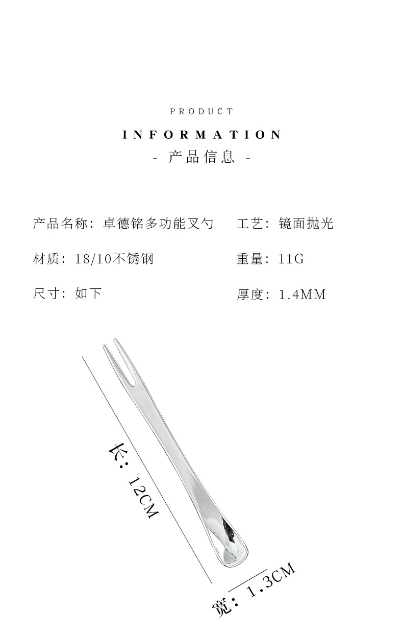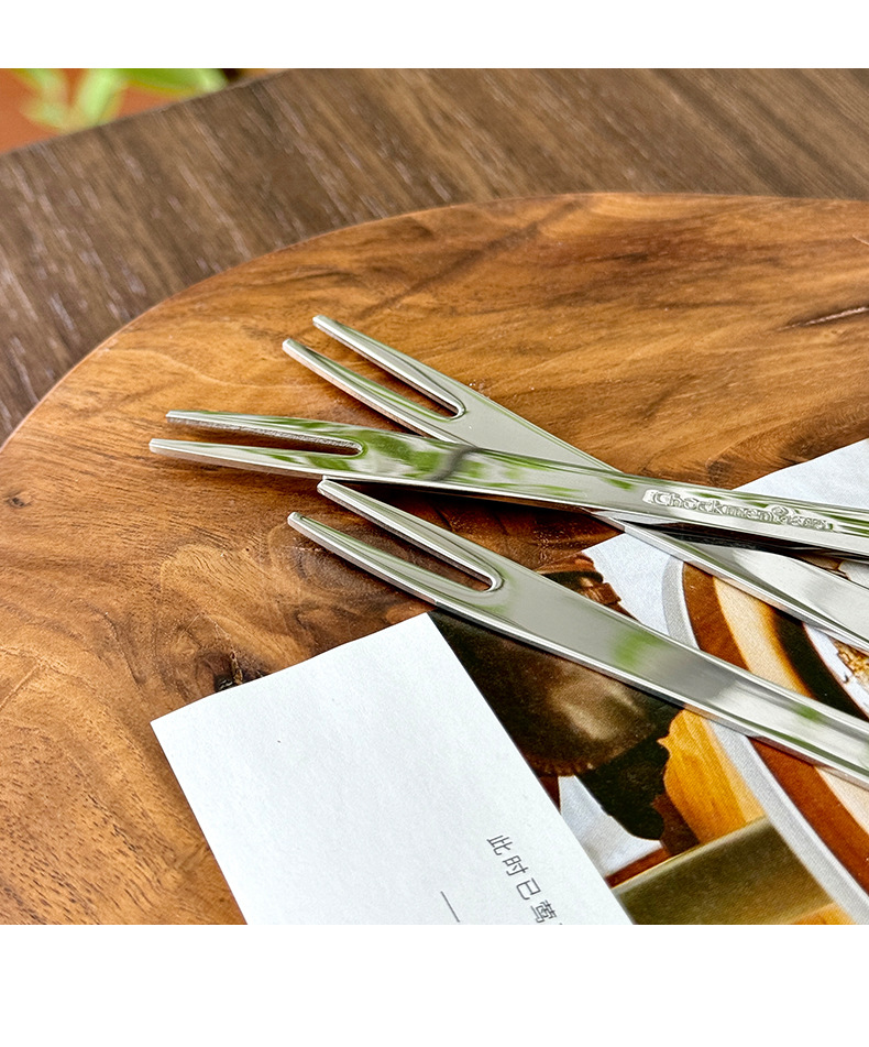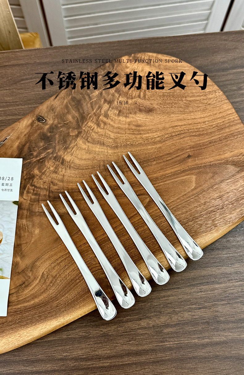 Chockmen Zhuo Deming 18 / 10 tenedor de cangrejo de acero inoxidable de doble cabeza tenedor cuchara de postre tenedor de fruta multiuso tenedor de cangrejo