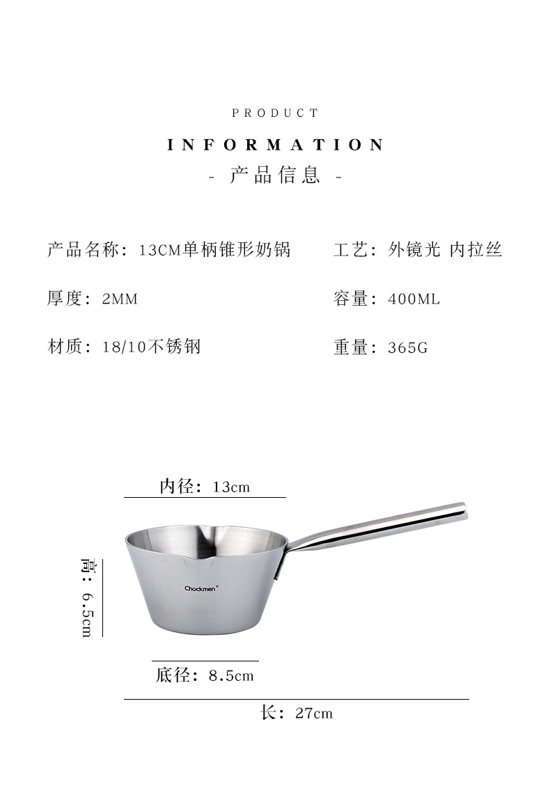 Chockmen Zhuo Deming 18 / 10 aceite de acero inoxidable mini olla de aceite caliente casera pequeña olla de leche con mango