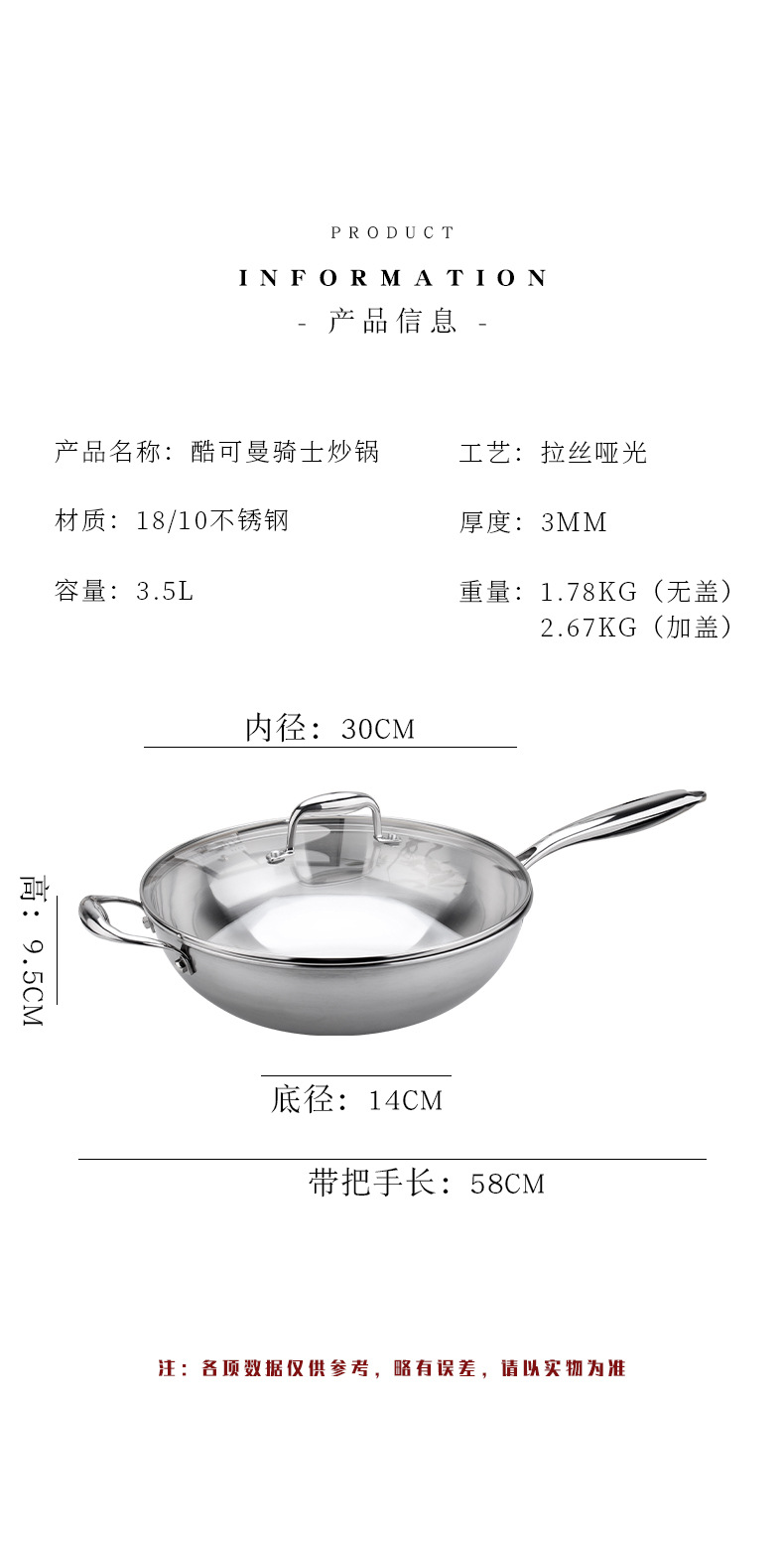| Especificaciones | Cool Keman Knight 30cm Wok de acero de cinco capas |
