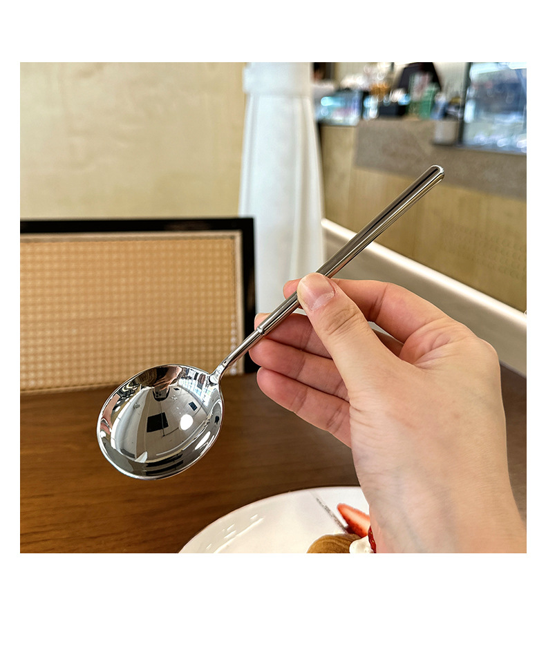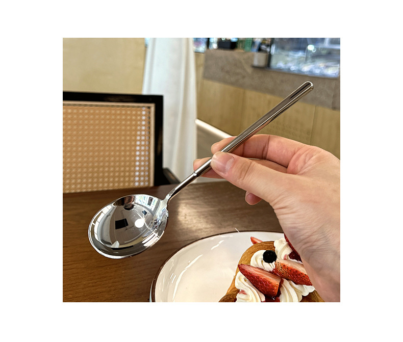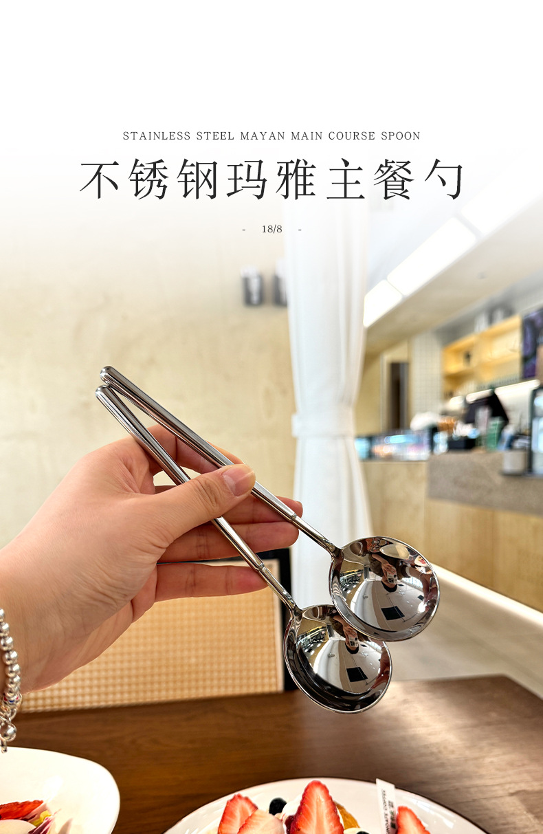 Cuchara de acero exquisita creativa para el hogar de acero inoxidable Cuchara de comida Cuchara redonda Cuchara gruesa de estilo europeo Maya Cuchara de comida occidental Postre